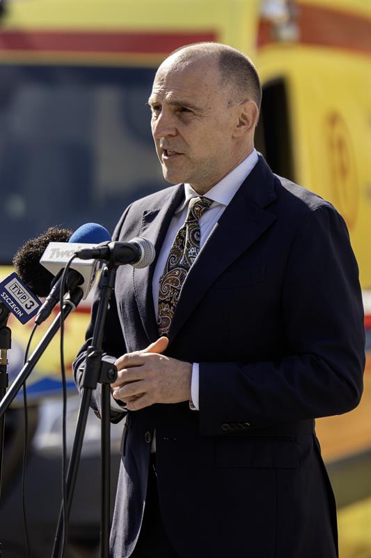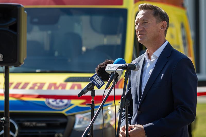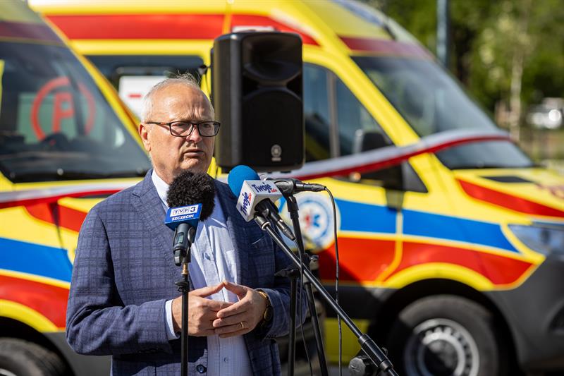 W uroczystości przekazania nowych karetek uczestniczyli także m.in.: wojewoda zachodniopomorski Adam Rudawski oraz marszałek województwa zachodniopomorskiego Olgierd Geblewicz.