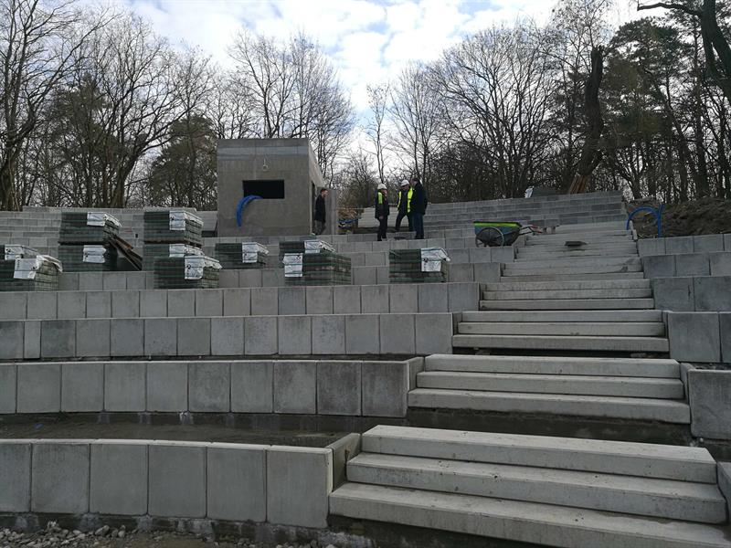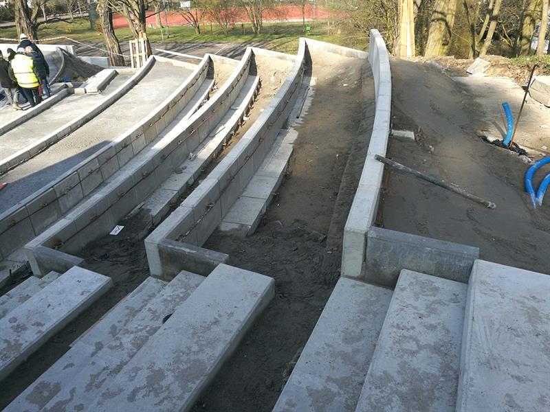 Trwa generalny remont obiektu. Wykonawca, czyli firma Dorbud, pracuje przy budowie murów oporowych, na których docelowo ulokowane będą miejsca siedzące.
