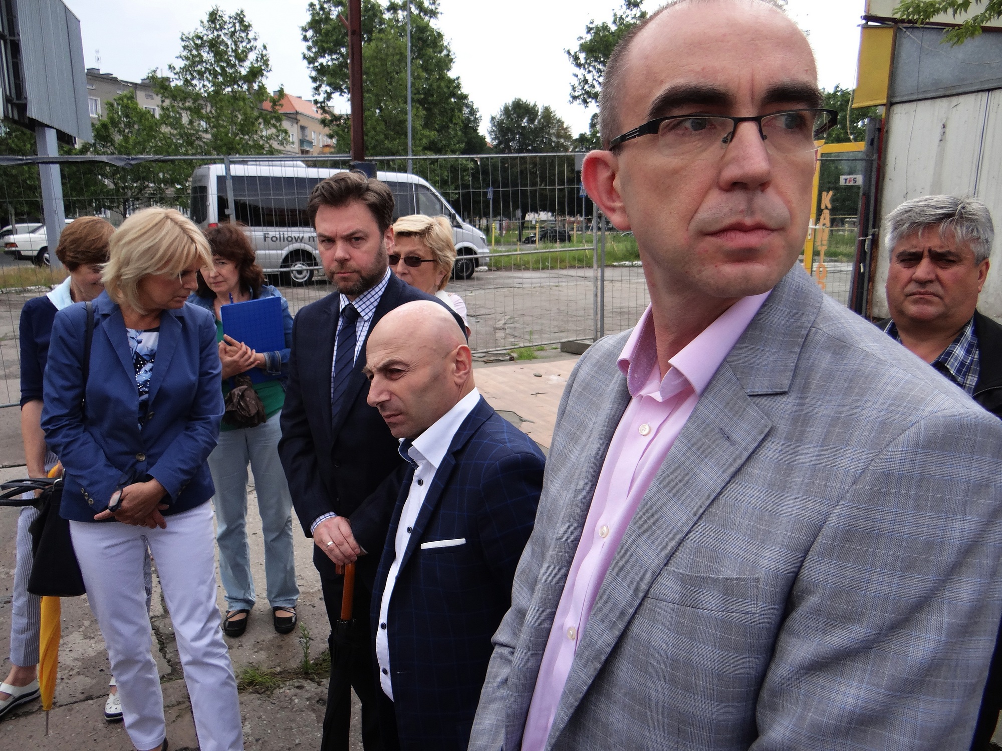 Na zdj.: Lipcowa wizja lokalna radnych z komisji ds. budownictwa i mieszkalnictwa u kupców z Rynku Centrum na Turzynie, z udziałem prezydenckiego zastępcy Daniela Wacinkiewicza. Nowe pawilony i sporne miejsce o nowe do nich dojście od al. Bohaterów Warszawy.