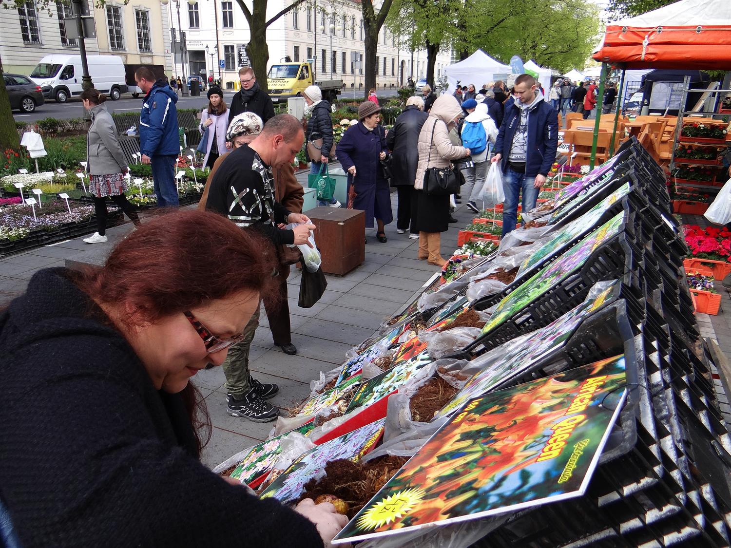 Podobnie jak na zielonym targu (Green Market), jaki zajmuje niemal całą dawną aleję kwiatową. Sadzonkom kwiatów, traw, drzew, krzewów i ziół zmienna deszczowa aura nie straszna. Dla Czytelników „Kuriera" przygotowaliśmy mini przewodnik po ofercie i cenach ogrodniczych stoisk. Oto ich wybór subiektywny: sadzonki warzyw - od 0,40 zł, poziomki - 1 zł; kłącza bylin i cebule kwiatowe, podobnie jak zioła przyprawowe (wyjątek: liść laurowy od 20 zł) - od 4 zł; goździki wieloletnie, ostróżki pelargonie, pełniki, rozchodniki, wiczomlecze - od 6 zł; goździki brodate, kocanki, ostnice - 5 zł; floksy, sasanki - od 5 zł; mak wschodni - 7 zł; złocienie, krwawniki - 8 zł; skalnice - od 9 zł, margaretki, przetacznik kłosowy, tawułki, żurawki - 10 zł; żywotniki - od 12, hosty - 20 zł, modrzewnica zimozielona, kalmia - od 22 zł; hortensje - od 35 zł, psianki, jaśminowce wonne - od 38 zł; sundaville - 50 zł; klony palmowe - 55 zł, sosny - od 160 zł.