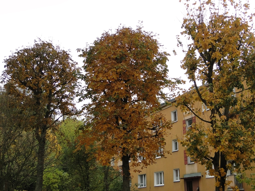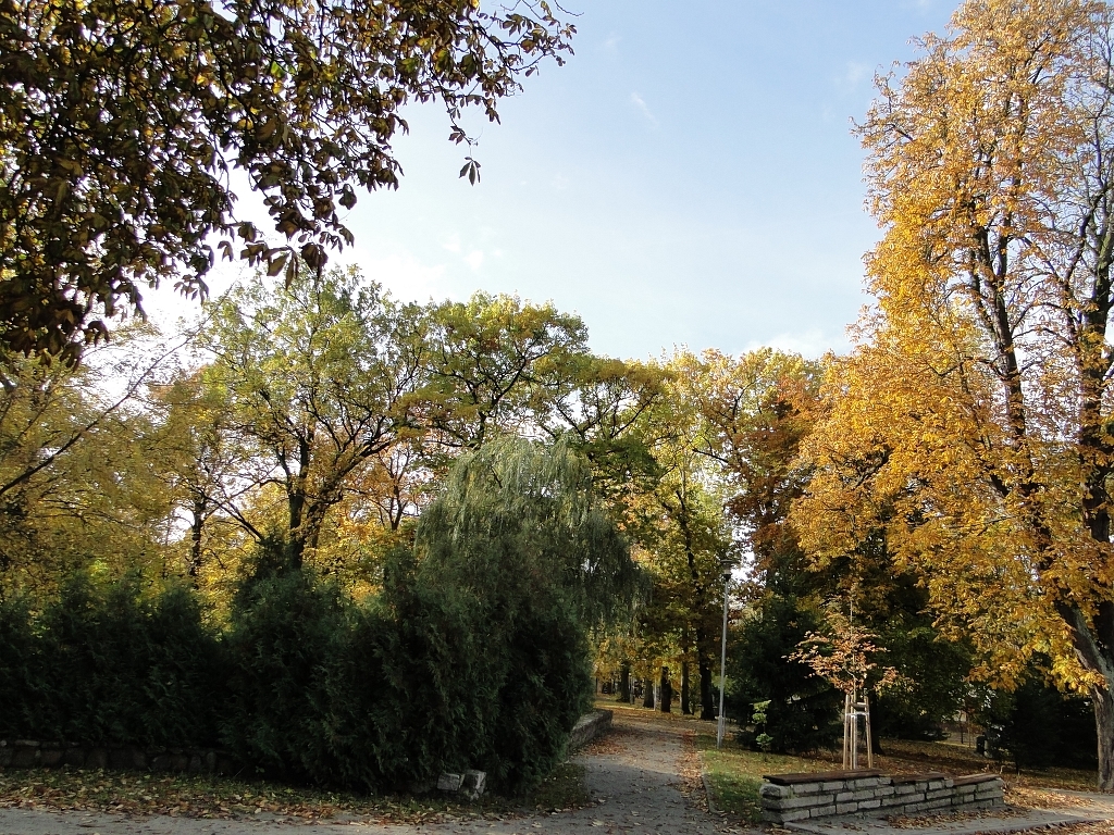 Oczy cieszą różnokolorowe liście drzew i krzewów. W lekkich podmuchach jesiennego wiatru opadają na ziemię wielobarwnym deszczem i ścielą się, szeleszczącym pod nogami spacerujących, dywanem.
