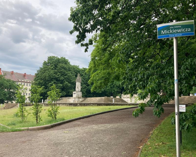 W tym miejscu stał kiedyś pomnik Fryderyka Wilhelma.Na koniu.I to był PIĘKNY pomnik.Teraz stoi coś co nazywa się pomnikiem Adama Mickiewicza.W Poznaniu potrafili postawić pomnik godny Wieszczowi,w Krakowie też.A TU stoi COŚ.
