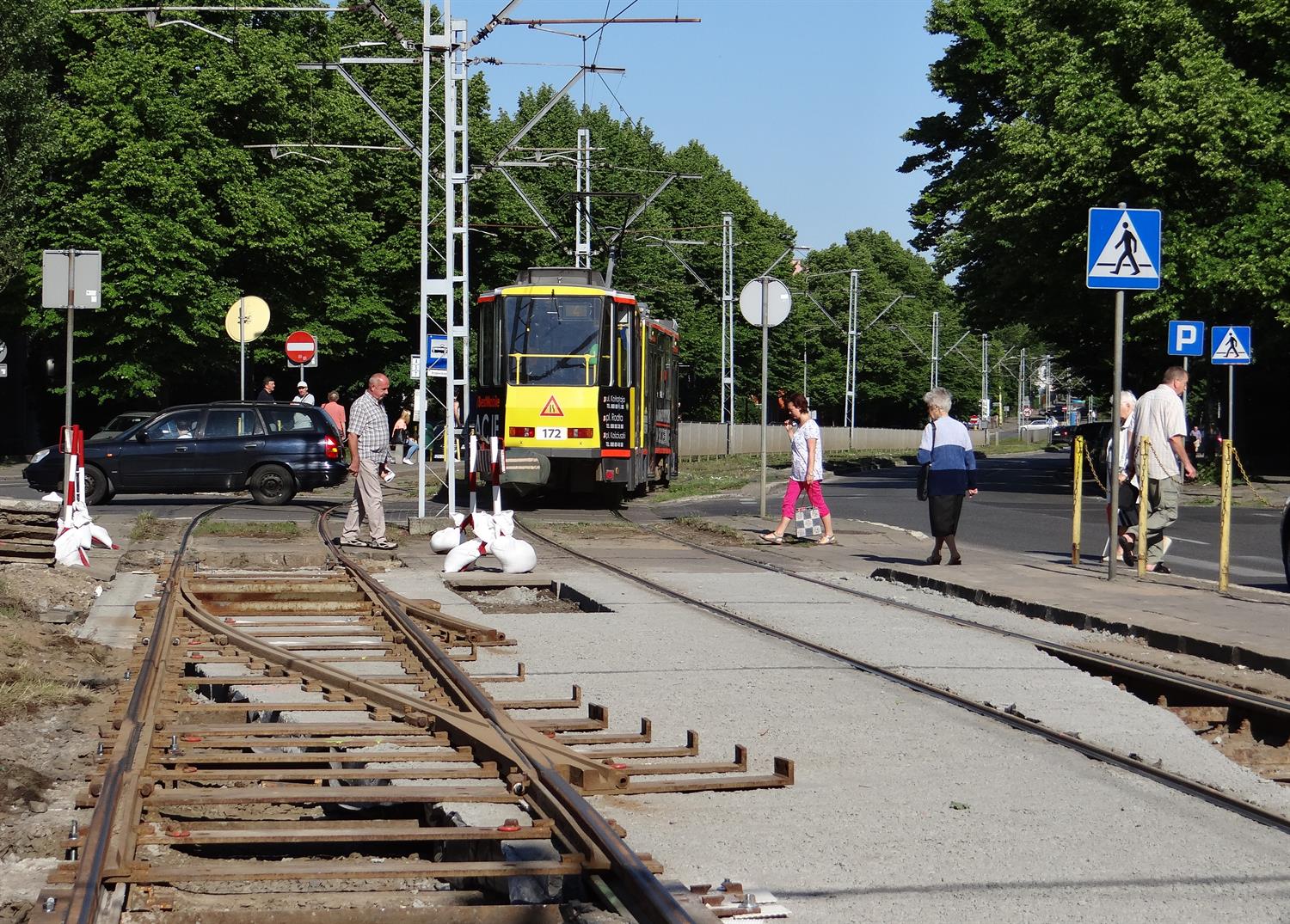 Na zdjęciu: przygotowania ZUE do przebudowy krzyżówki trwają od kilku dni, urządzana jet m.in. tymczasowa tzw. przelotka dla tramwajów w ul. Mickiewicza. Przy okazji inwestycji wymieniony zostanie także odcinek torowiska od skrzyżowania z ul. Brzozowskiego do wysokości skrzyżowania z ul. ul. Wernyhory, Żołnierską i Reduty Ordona.