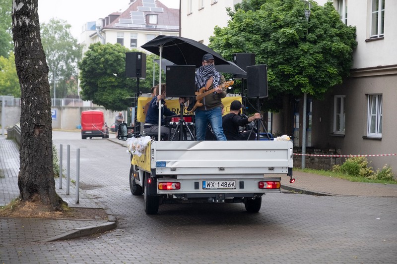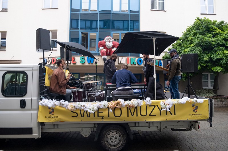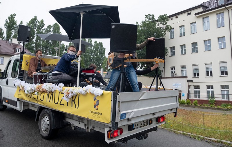 W sobotę, 20 czerwca, zespół współpracujący z Filharmonią ruszył w trasę – do sześciu szczecińskich szpitali. Młodzi muzycy najpierw zagrali w szpitalu w Zdrojach. Potem, specjalną platformą, dotarli do placówki na Pomorzanach, a stamtąd do szpitala MSWiA przy ul. Jagiellońskiej.