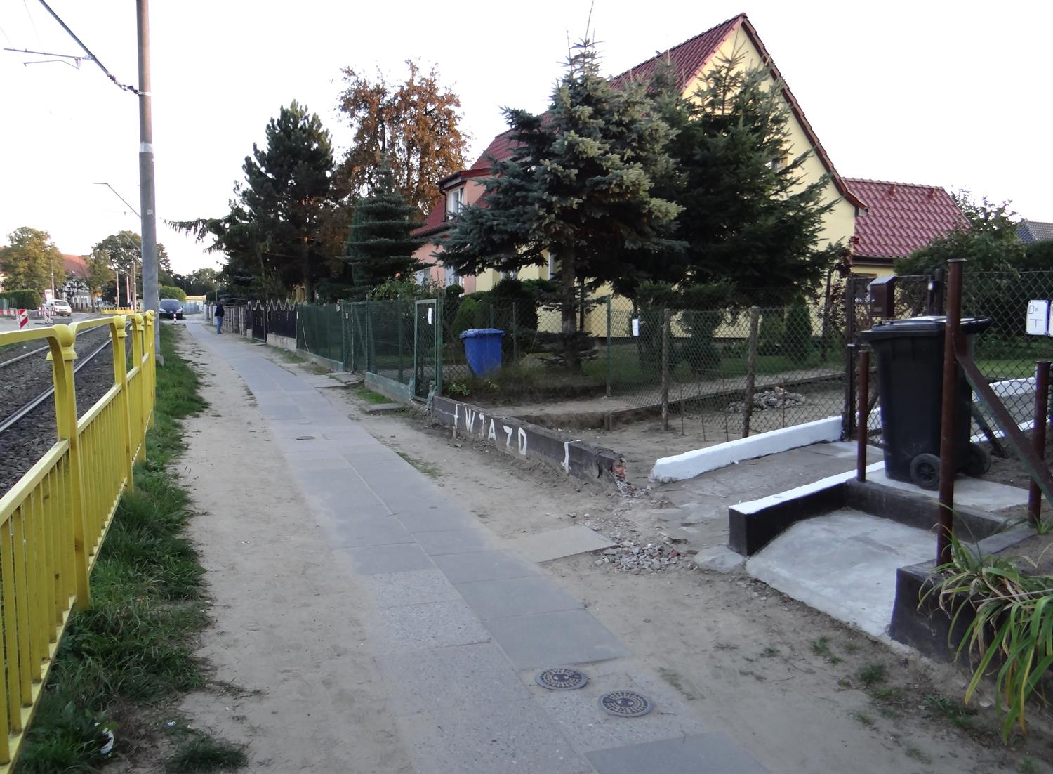 Na zdjęciach: ulica Kwiatowa i ogrodzenia , których rozbiórkę ZDiTM nakazał właścicielom domów położonych za pasem torowiska i duktem służącym za chodnik oraz dojście do posesji.