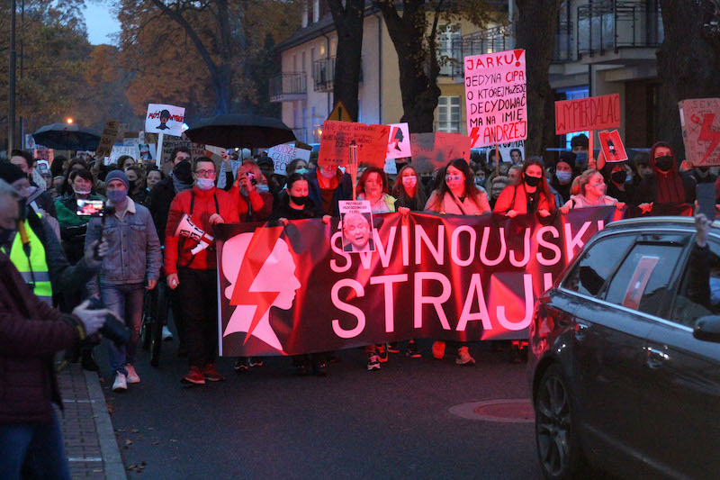 Kolejny protest na ulicach Świnoujścia. Mieszkańcy kurortu głośno dawali wyraz swojemu niezadowoleniu z decyzji Trybunału Konstytucyjnego i zaostrzeniu przepisów aborcyjnych. Pojawiło się sporo aut. Kierowcy klaksonami pozdrawiali manifestujących, podobnie ludzie w oknach mijanych budynków.
