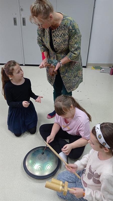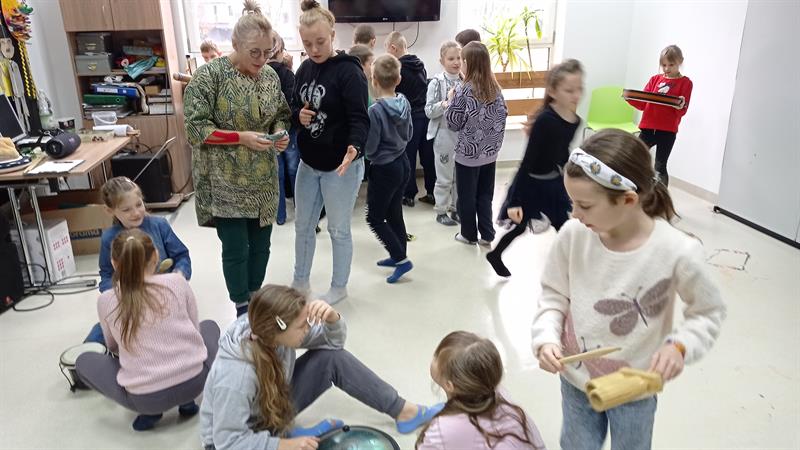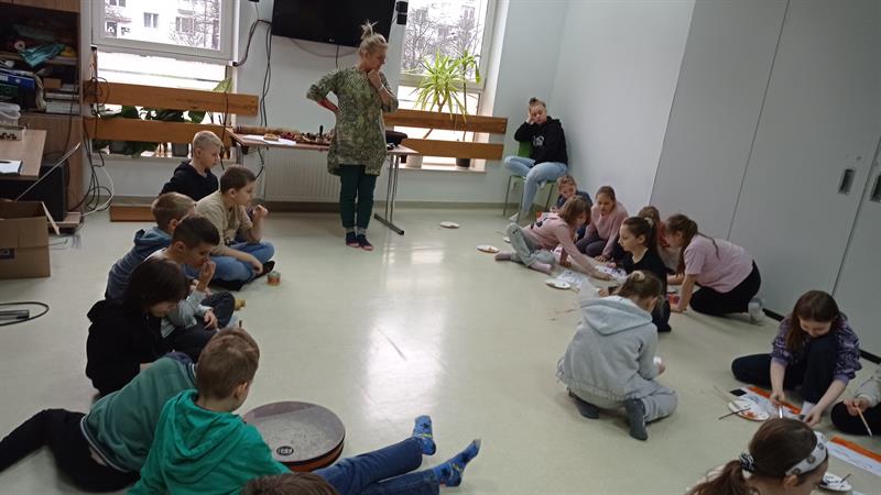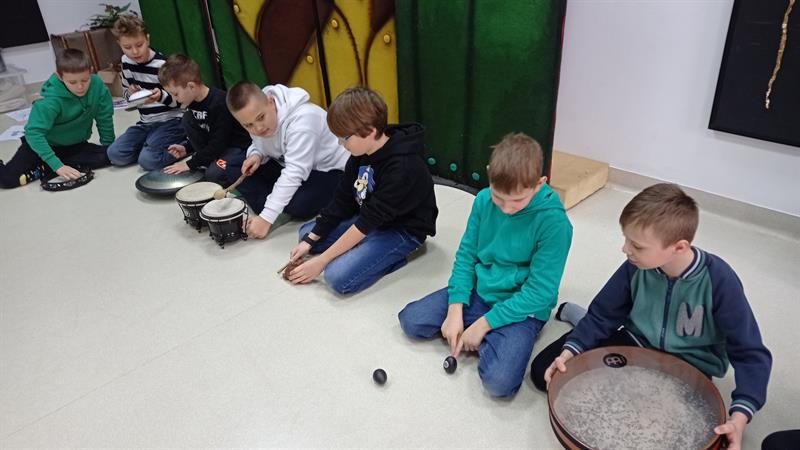 Uczniowie poznali elementy języka migowego i sami próbowali taki język tworzyć. Rozmawiali o abstrakcyjnych ilustracjach stworzonych do książki przez Aleksandrę Grzegorek. Następnie sami wykonali farbami obrazy do muzyki tworzonej na żywo przez siebie nawzajem. Do dyspozycji mieli szereg przeróżnych instrumentów, a dyrygentem była pani Lidia.©℗