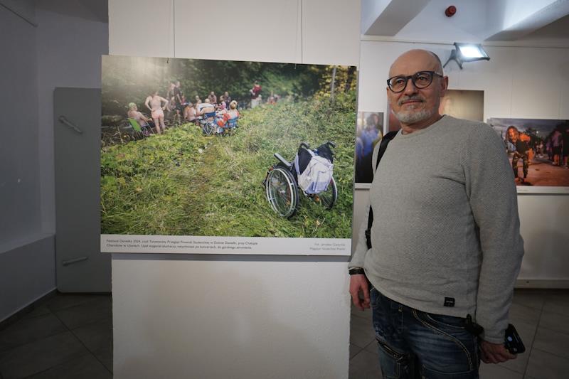 Na wystawie dominowały zdjęcia o tematyce sportowej. Nie zabrakło też prac poruszających tematykę muzyczną oraz społeczną. W tej grupie zwracało uwagę zdjęcie Jarosława Gaszyńskiego, gdzie widać grupę ludzi uczestniczących w pikniku. Na tym samym zdjęciu widać też inwalidzki wózek…