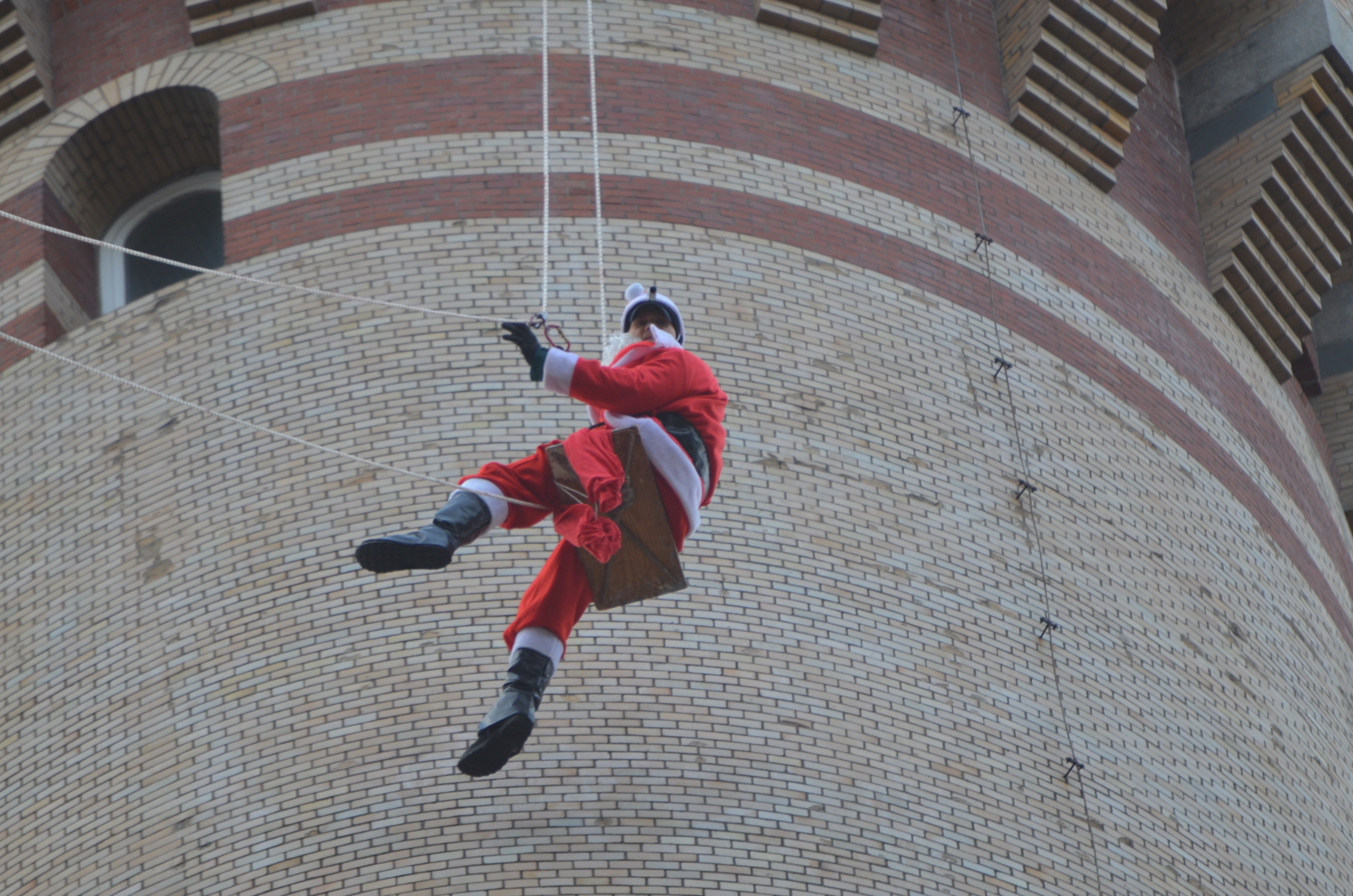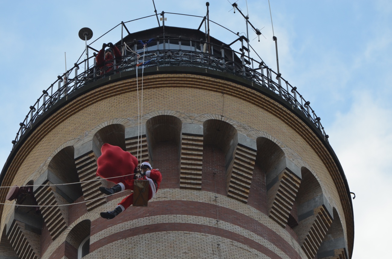 To był najodważniejszy ze wszystkich Świętych Mikołajów, jacy pojawili się nad morzem w ten weekend! Śmiałek zjechał na linie ze szczytu latarni morskiej w Świnoujściu. Warto dodać, że to najwyższa tego typu budowla w Polsce i jedna z najwyższych w Europie.