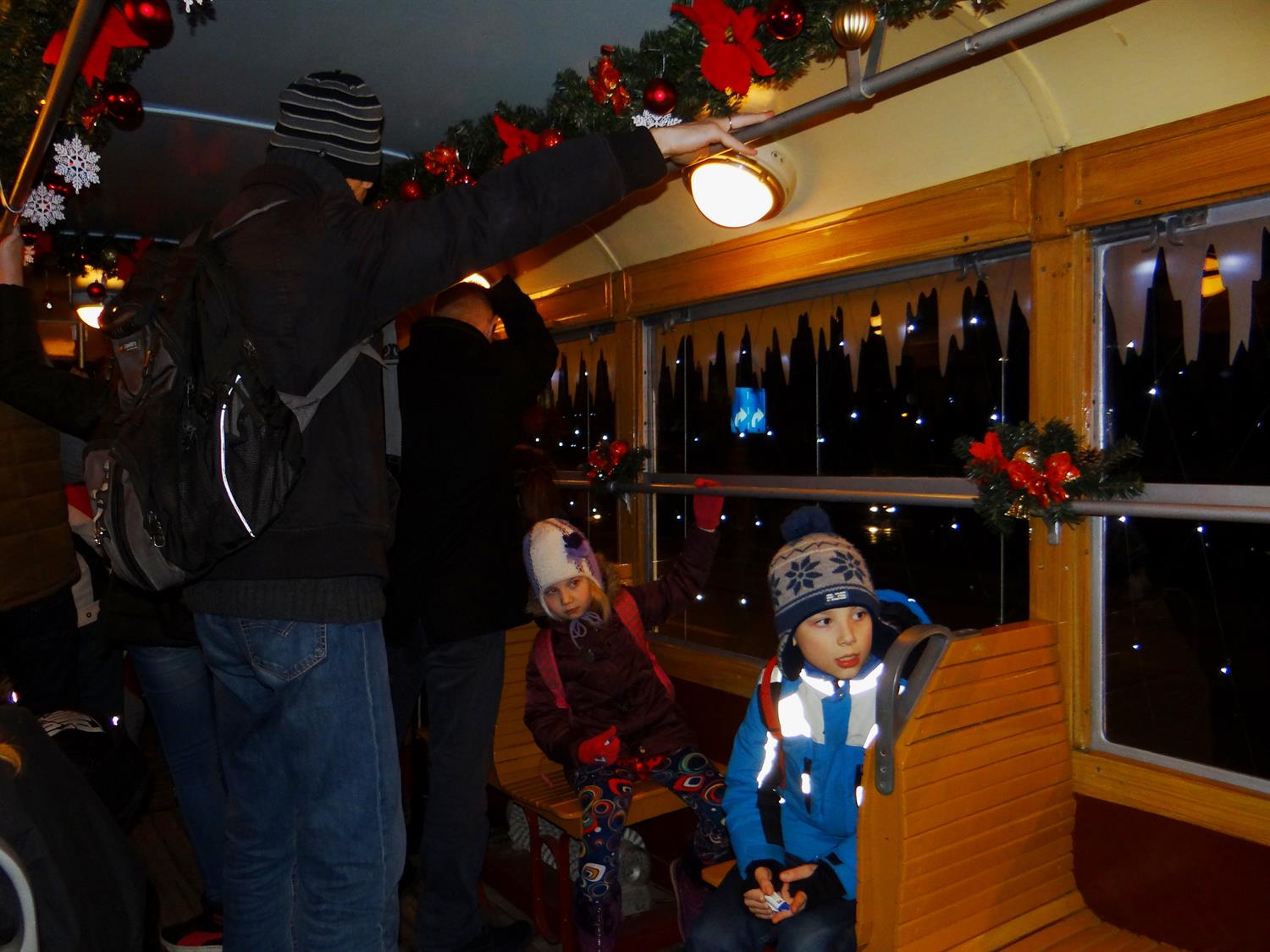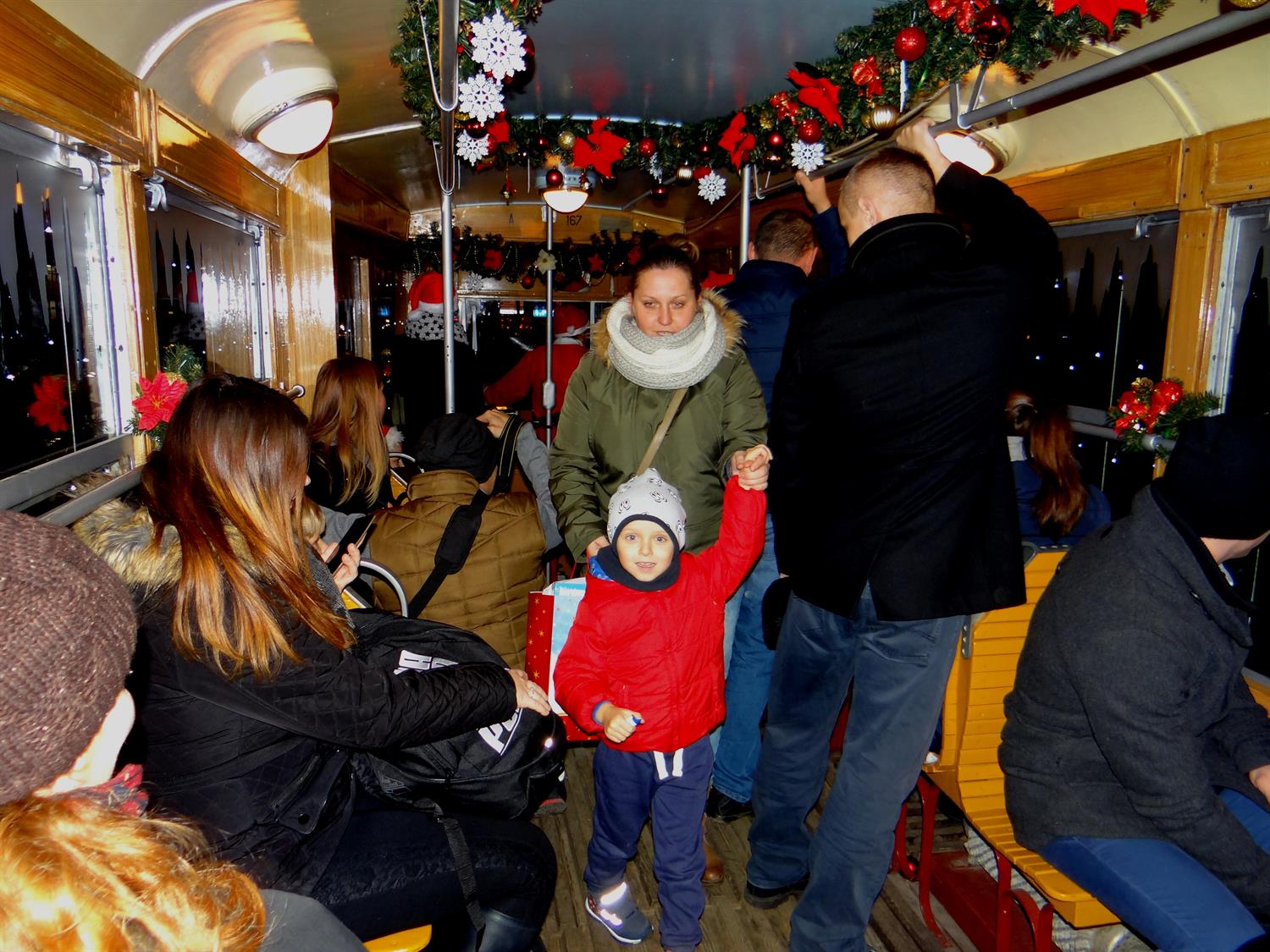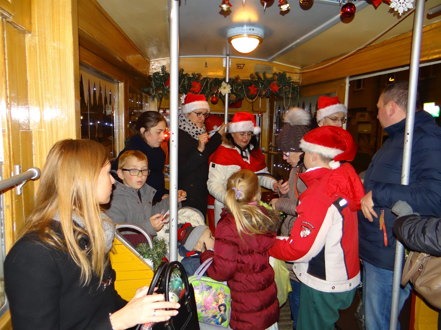 Załoga specjalnego odświętnie udekorowanego tramwaju, czyli pomocnicy Mikołaja w stosownych do okoliczności przebraniach, witała w Mikołajki uśmiechem każdego i częstowała pasażerów słodkościami. Za pulpitem i tym razem stanął pan Roman Mirek.