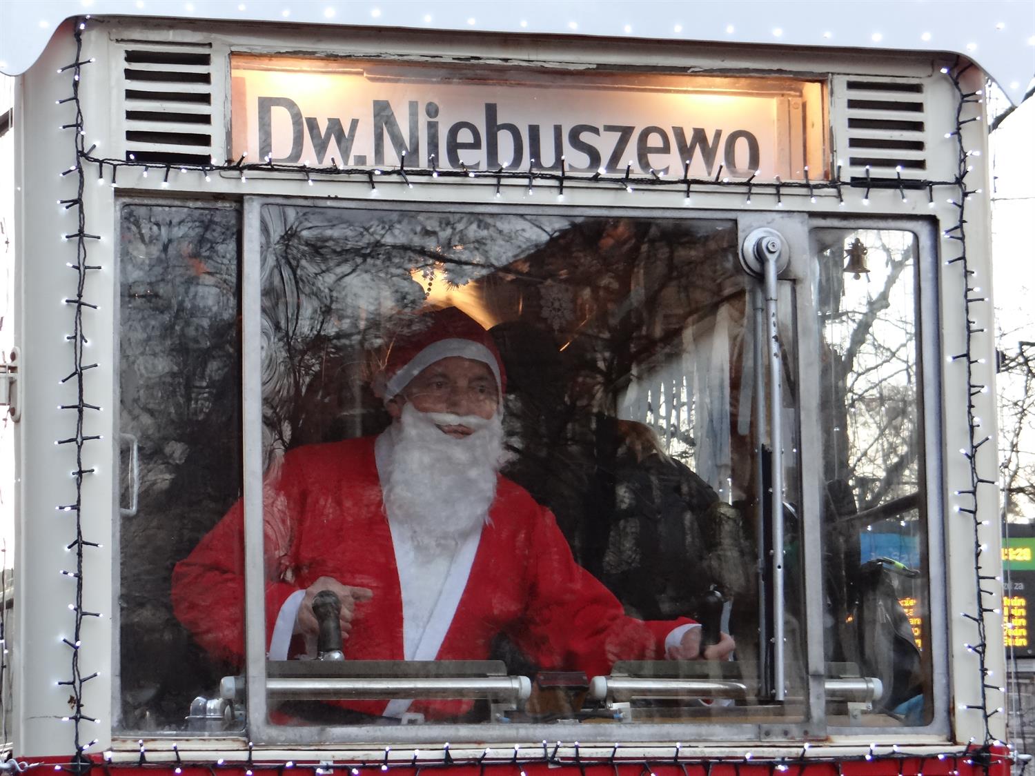 Wagonu historycznego z czapką św. Mikołaja i sznurami świetlnymi trudno było nie zauważyć. W darmowy kurs trasą linii 12 - Budziszyńska — aleja Powstańców Wielkopolskich — plac Szyrockiego — aleja Piastów — plac Kościuszki — aleja Piastów — plac Szarych Szeregów — Piłsudskiego — plac Odrodzenia — Piłsudskiego — plac Grunwaldzki — Piłsudskiego — plac Rodła — aleja Wyzwolenia — rondo Giedroycia — Kołłątaja — rondo Sybiraków — Asnyka — Orzeszkowej mógł i może wybrać się każdy.