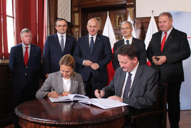 Umowę na dofinansowanie trwającej już wymiany rozjazdów podpisali Ewa Karasińska, dyrektor Departamentu Wdrażania Projektów CUPT oraz Arnold Bresch, członek Zarządu PKP PLK. W uroczystości towarzyszyli im m.in. minister inwestycji i rozwoju Jerzy Kwieciński, minister spraw wewnętrznych i administracji Joachim Brudziński oraz posłowie Leszek Dobrzyński, Artur Szałabawka, Czesław Jach i Krzysztof Zaremba.