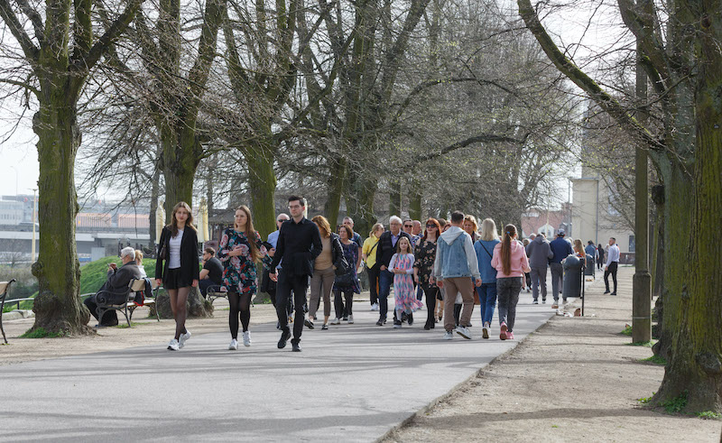 To najgorętszy koniec marca od lat. Także w Szczecinie. Termometry wskazują teraz temperaturę ponad 25 stopni Celsjusza. Słoneczna aura i świąteczny czas sprzyjają nie tylko spotkaniom rodzinnym przy wielkanocnym stole. O czym świadczą tłumy na ulubionych trasach spacerowych szczecinian, m.in. Jasnych Błoniach, w parku Kasprowicza, parku Leśnym Arkońskim oraz na nadodrzańskich bulwarach.