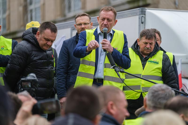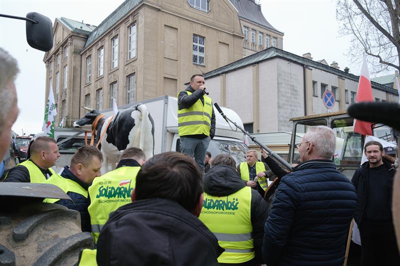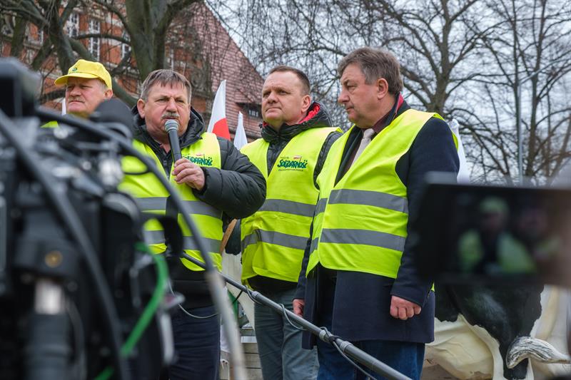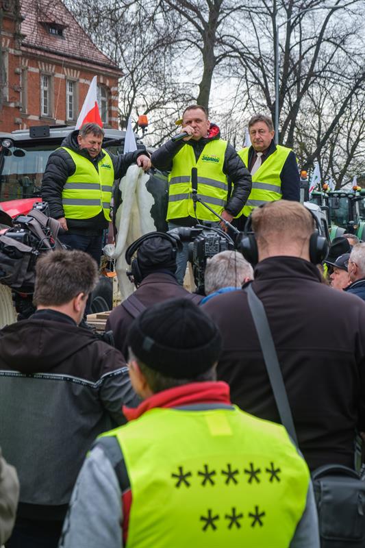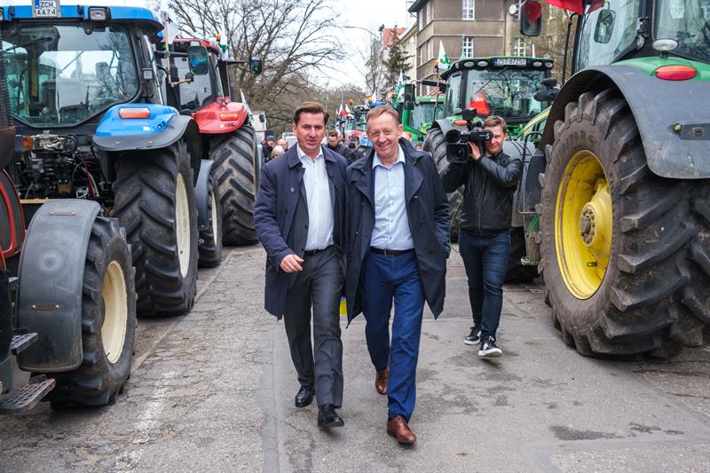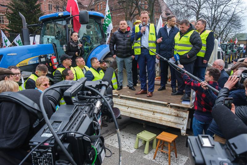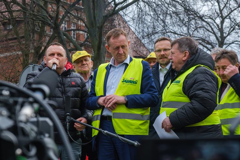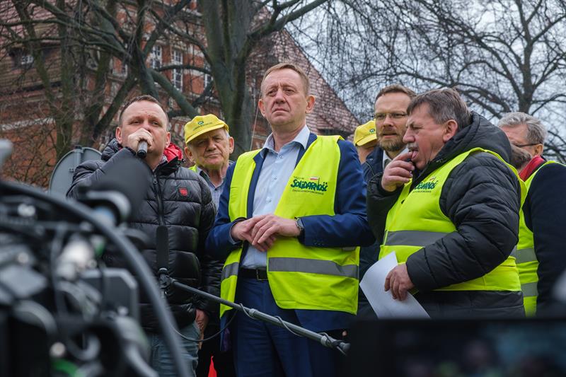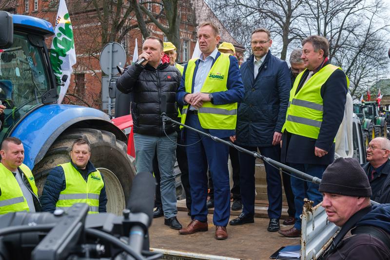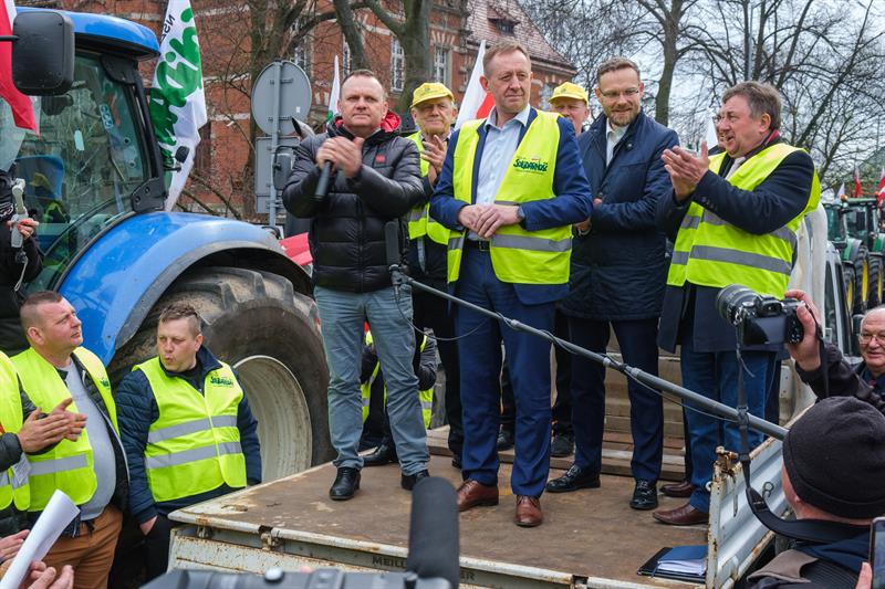 - Apeluję o pomoc. Razem możemy wygrać tę sprawę do polskiego rolnictwa - powiedział Robert Telus, stając na platformie naprzeciwko chłopów. Obok niego oprócz liderów protestu pojawili się wojewoda zachodniopomorski Zbigniew Bogucki oraz poseł Prawa i Sprawiedliwości Czesław Hoc. - Jestem umówiony, że w piątek z ministrem rolnictwa Ukrainy podpiszę porozumienie. Jeżeli to się uda, to od jutra do Polski nie będzie wpływało zboże, które będzie rozładowywane w Polsce. To bardzo ważne. Zostanie jeszcze kwestia tranzytu. Mam tu pewne pomysły.