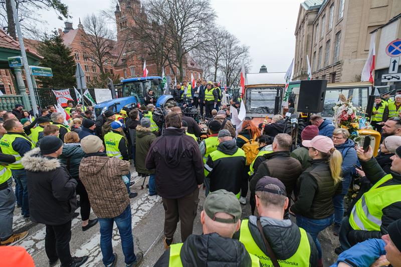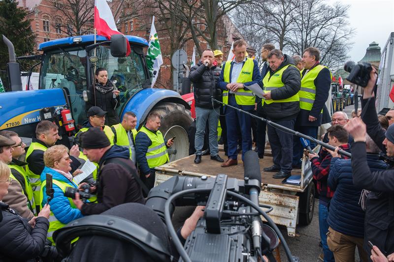 Rolnicy protestują od trzech tygodni. Ostatnie miesiące są dla nich trudne. Polska, chcąc pomóc sąsiadowi napadniętemu przez Rosjan, zgodziła się transferować ukraińskie zboże do innych krajów, w tym do walczącej z głodem Afryki. Ale część zboża – nikt nie wie ile – została w Polsce. Ukraińska pszenica jest tańsza niż nasza, więc psuje rynek. Dochody rolników spadają. Wielu z nich obawia się bankructwa. Do tego pojawiły się doniesienia o tym, że ukraińskie zboże gorszej jakości, przeznaczone na spalenie lub pellet, trafiło do polskich producentów mąki. Rolnicy uważają także, że zabójcza dla nich będzie polityka klimatyczna Unii Europejskiej.