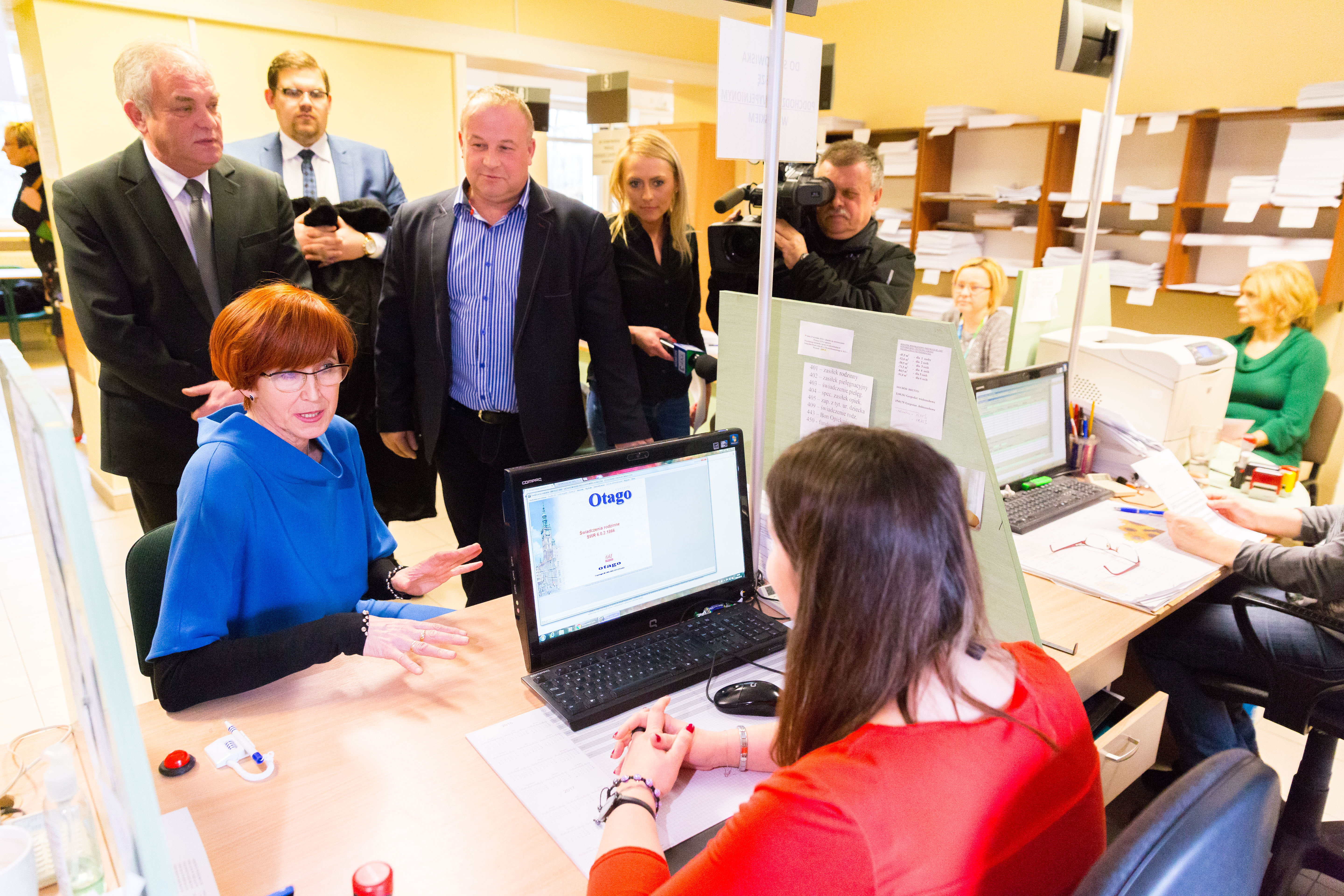 Elżbieta Rafalska, minister rodziny, pracy i polityki społecznej sprawdza dzisiaj w Szczecinie, jak samorządy z Zachodniopomorskiego przygotowują się do wdrożenia programu „Rodzina 500 plus". Najpierw w Urzędzie Wojewódzkim rozmawiała z przedstawicielami samorządów, a później zwiedzała Szczecińskie Centrum Świadczeń.