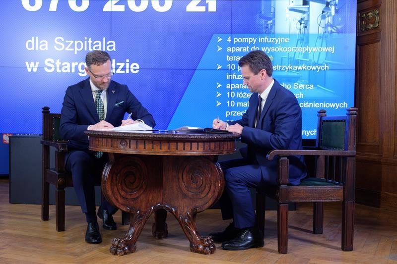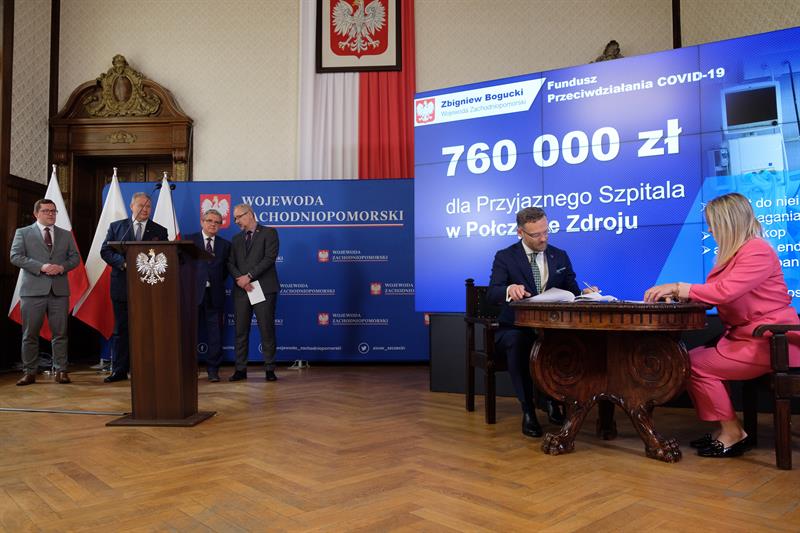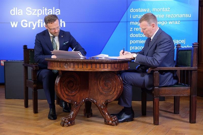 Minister zdrowia Adam Niedzielski uczestniczył w poniedziałek (30 maja) w Szczecinie w podpisaniu umów z przedstawicielami zachodniopomorskich szpitali na dofinansowanie inwestycji i zakup sprzętu z Funduszu Przeciwdziałania Covid-19. Łącznie to niemal 25,7 mln zł, które trafią do 20 placówek z naszego regionu.