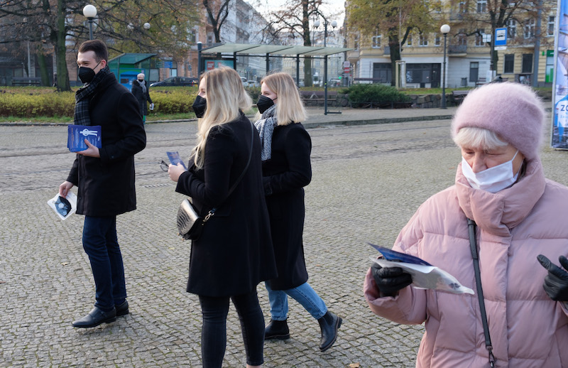 Po spotkaniu z mediami członkowie Stowarzyszenia Młodzi Demokraci na placu Grunwaldzkim rozdawali mieszkańcom antysmogowe maseczki, które zawierają specjalny filtr chroniący przed przedostawaniem się do płuc pyłków PM2,5 oraz ulotki informacyjne dotyczące smogu.