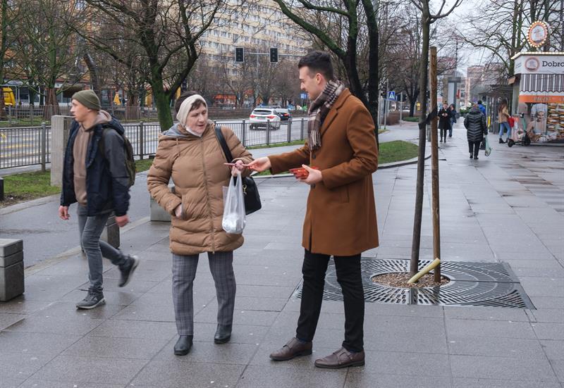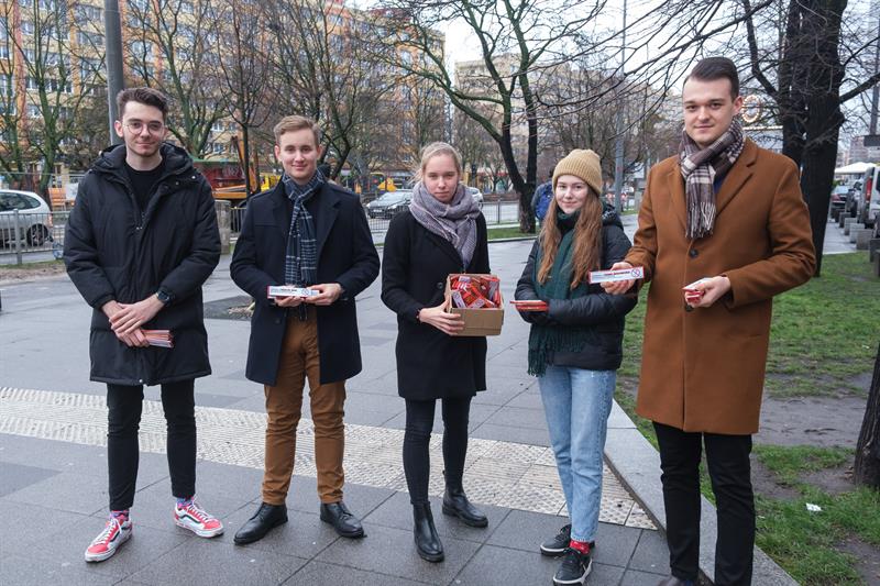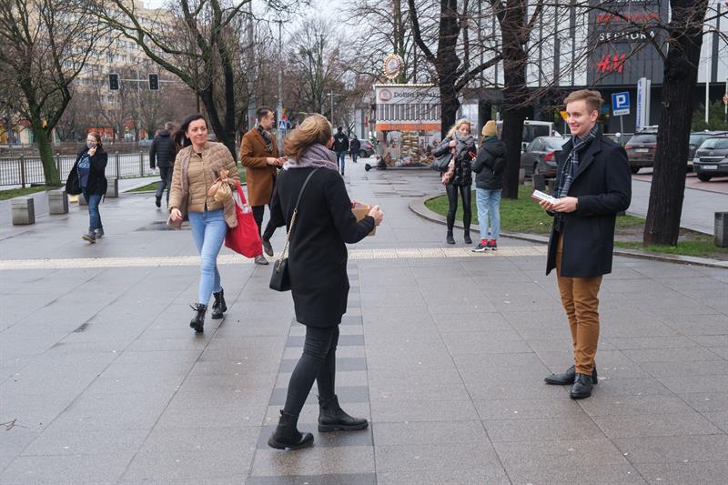 Młodzi Demokraci rozdali 100 sztuk opakowań zimnych ogni przechodniom na Placu Rodła. Zachęcali ich do zrezygnowania z fajerwerków. Fot. Dariusz GORAJSKI