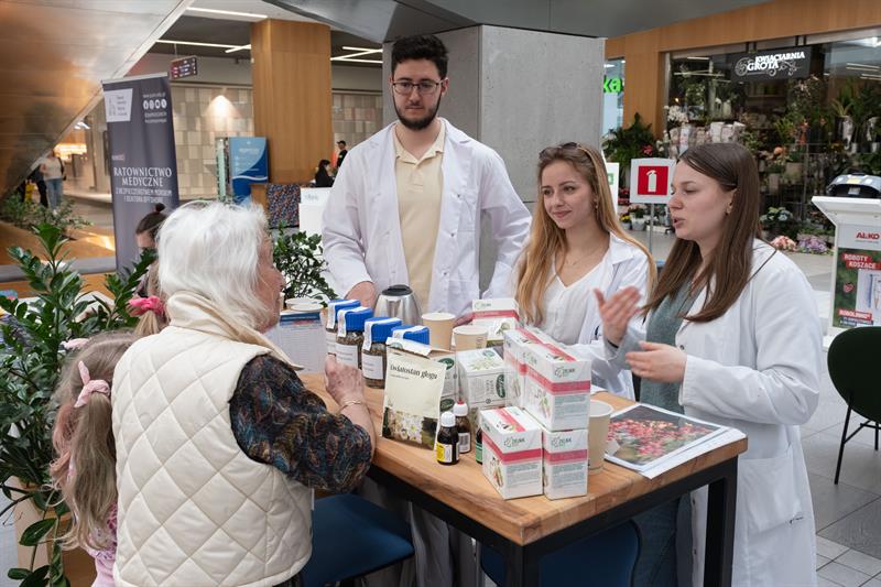 Było np. stoisko z ziołami, przy którym studenci farmacji podpowiadali, jakie są możliwości ziołolecznictwa, jak naturalnie wspierać organizm. Przy innym stanowisku można było sprawdzić wydolność swoich płuc, a przy kolejnych zmierzyć ciśnienie, saturację czy poziom cukru we krwi. Była też możliwość sprawdzenia, jak czuje się osoba pod wpływem alkoholu czy narkotyków - to za pomocą specjalnych gogli. I nie mogło zabraknąć też porad dotyczących prawidłowego odżywiania. To wszystko nie tylko dzięki studentom i magistrom farmacji, ale też dzięki studiującym diagnostykę laboratoryjną czy dietetykę. Akcję wsparła inspekcja sanitarna i inni partnerzy.