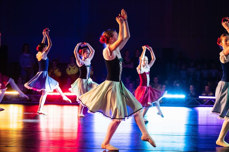 Młodzi artyści zachwycali nie tylko umiejętnościami tanecznymi, ale także ekspresją, kostiumami i scenografią. Ich pasja i radość z tańca były widoczne w każdym ruchu, każdej figurze i każdym uśmiechu. Publiczność, składająca się z rodziców, dziadków, opiekunów i przyjaciół, z entuzjazmem reagowała na każdy występ, nagradzając młodych tancerzy gromkimi brawami.