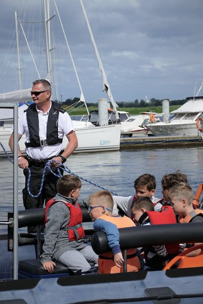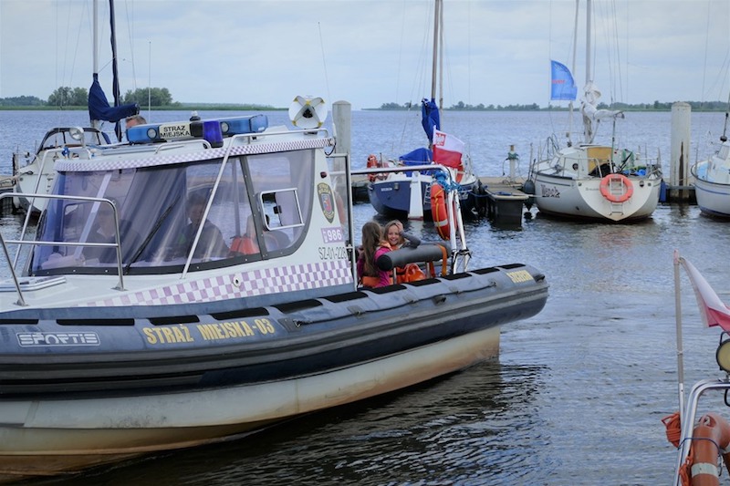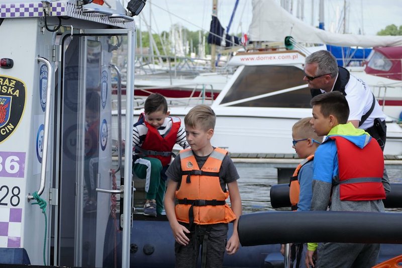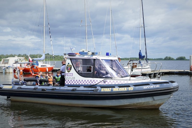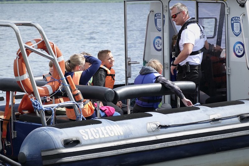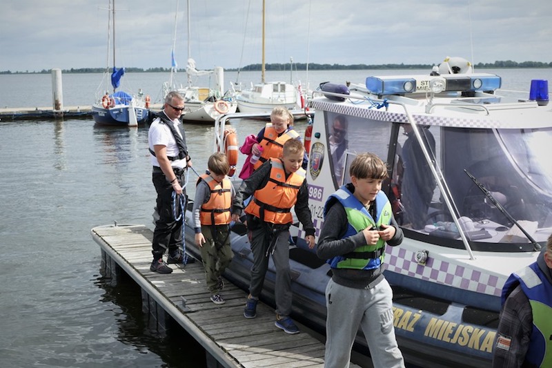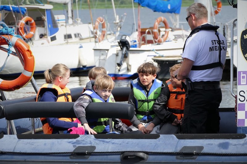 Na koniec spotkania dzieci mogły dokładnie obejrzeć łodzie strażników miejskich, wejść na pokład i zobaczyć wyposażenie. Następnie młodzi żeglarze, odpowiednio poinstruowani i zaopatrzeni w kapoki bezpieczeństwa, w nagrodę za pilne uczestnictwo w prelekcji odbyli krótkie rejsy po Odrze pod czujnym okiem funkcjonariuszy.