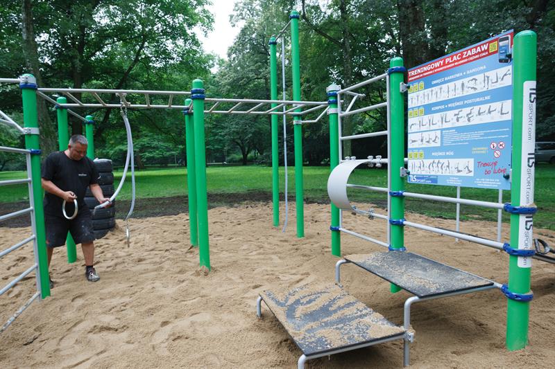 Już jest: wielki kombinat do ćwiczeń w parku Żeromskiego. Dla wszystkich, którzy chcą utrzymać kondycję i rzeźbić ciało, wykorzystując siłę własnych mięśni, a więc skacząc, pompując czy choćby dyndając. Inwestycja miejska, o jaką zabiegała Rada Osiedla Stare Miasto, a którą - w cyklu „Trenuję, bo lubię" - zrealizowała Fundacja Anioły Sportu.