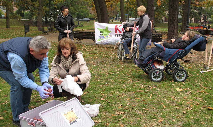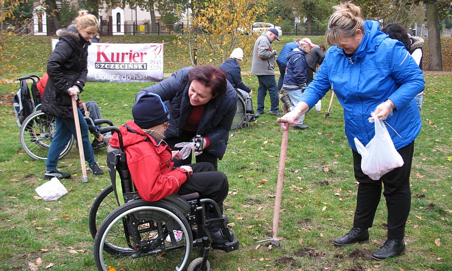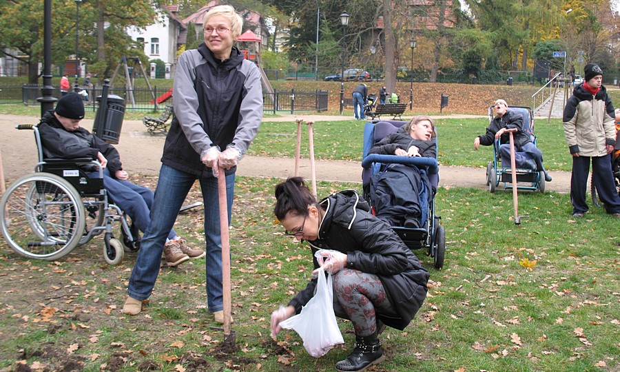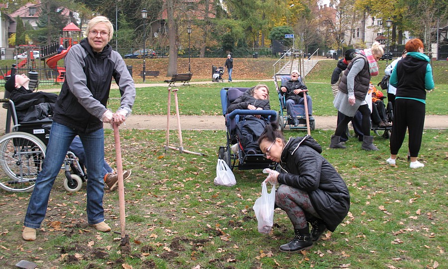 - W całym Szczecinie sadzą krokusy, więc my nie będziemy gorsi. Chcemy pokazać, że w społecznym działaniu na rzecz miasta bierzemy udział na równi z innymi. Choć oczywiście na miarę sił i indywidualnych możliwości naszych podopiecznych. Dajemy radę! – mówiła Ewa Sokołowska-Potoczny, logopeda i neurologopeda z placówki przy pl. Jakuba Wujka, w której dzienną pomoc otrzymują osoby głęboko upośledzone intelektualnie i z tzw. sprzężeniami, czyli również niepełnosprawne ruchowo.