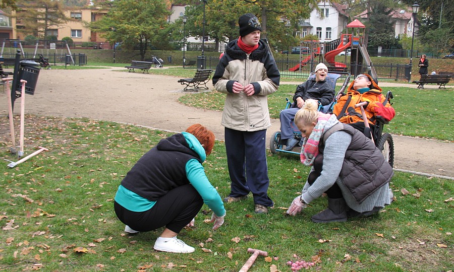 Ośrodek to opieka terapeutyczna, wsparcie rehabilitacyjne i edukacyjne. Z jakiej obecnie korzysta 40 osób. Najmłodszy z podopiecznych ma 7 lat, gdy najstarszy – 53. Tylko część z nich była w stanie fizycznie współuczestniczyć w sadzeniu krokusów. Dla większości, szczególnie poruszających się na wózkach inwalidzkich, to była przede wszystkim okazja do spędzenia czasu na świeżym powietrzu. Zabawę w tworzenie krokusowych dywanów przejęli ich terapeuci. Stąd „sto lat” odśpiewane na ich cześć przez podopieczną z zespołem Downa.