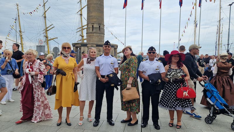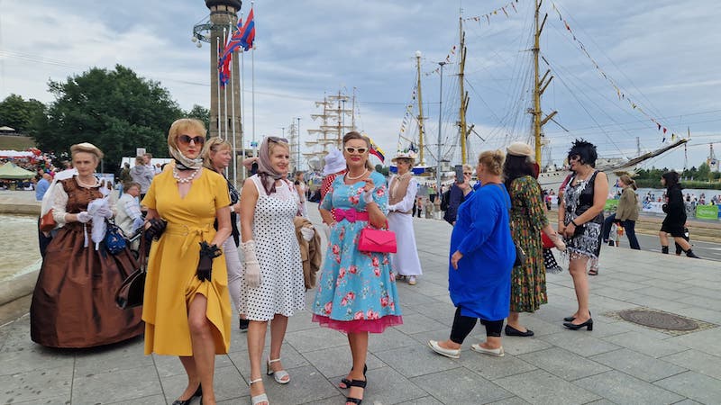 W piątkowy wieczór na Wałach Chrobrego pojawili się pasjonaci mody retro i członkowie grupy Retro Vibes, wzbudzając zainteresowanie i zachwyt tłumu, który przybył podziwiać żaglowce. Kilkunastoosobowa grupa pozowała do zdjęć zarówno fotografom, jak i mieszkańcom czy turystom.