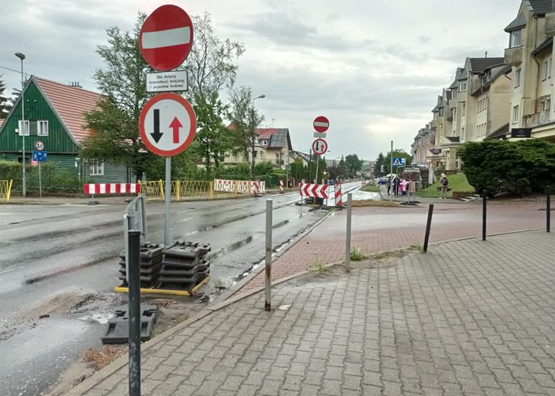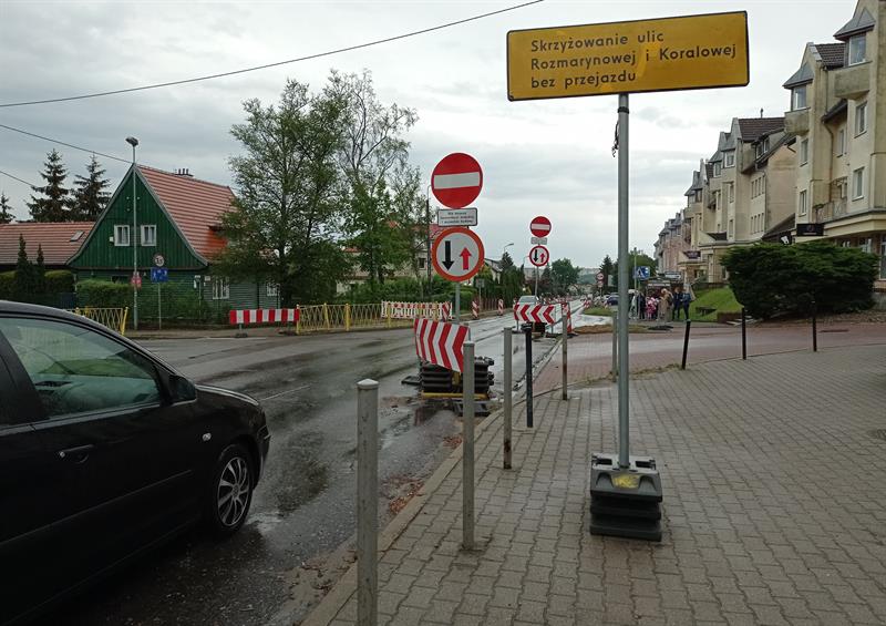 Utrzymany jest ruch wahadłowy sterowany sygnalizacją od stacji paliw Circle do styku ul. Modrej z ul. Koralową. Stosowne znaki informują również nadjeżdżających od strony Bezrzecza o wyłączeniu z ogólnego ruchu m.in. skrzyżowania ulic Koralowej i Rozmarynowej. A blokada objęła również odcinek do wysokości skrzyżowania z ul. Nowowiejską. Tamtędy na czas robót dopuszczony jest teraz tylko ruch aut z wystawionymi przepustkami oraz autobusów komunikacji miejskiej, służb komunalnych i ratunkowych. Ponadto zachowany został przejazd dla samochodów dostawczych w godz. 18-6.