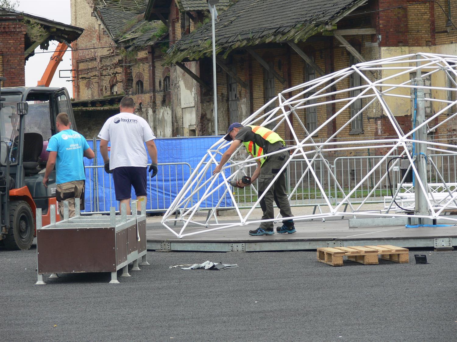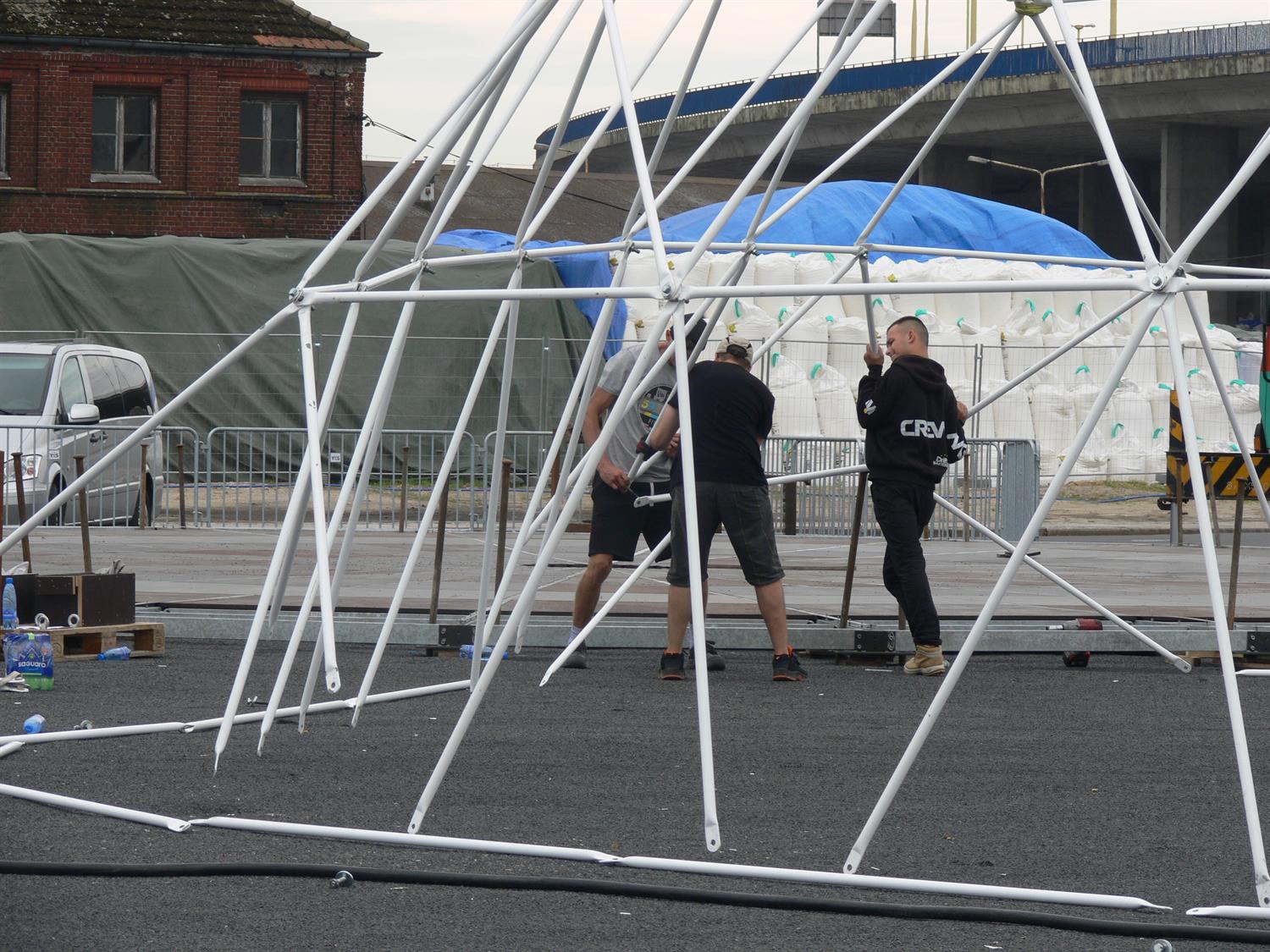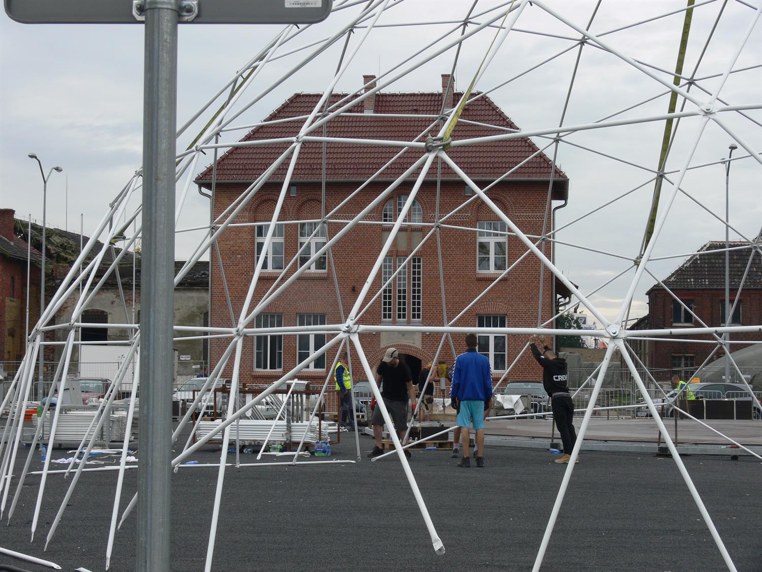 Jednocześnie na Łasztowni rozpoczęły się prace przy montażu olbrzymich karuzel i innych urządzeń wesołego miasteczka. Powstają też konstrukcje sferycznych namiotów.