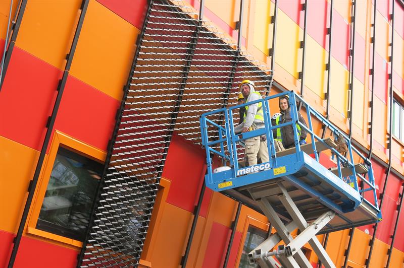 Morskie Centrum Nauki powstające na szczecińskiej Łasztowni mniej kolorowe. Na budynku rozpoczęto montowanie tzw. siatki cięto–ciągnionej, która stanowi zewnętrzną warstwę elewacji.