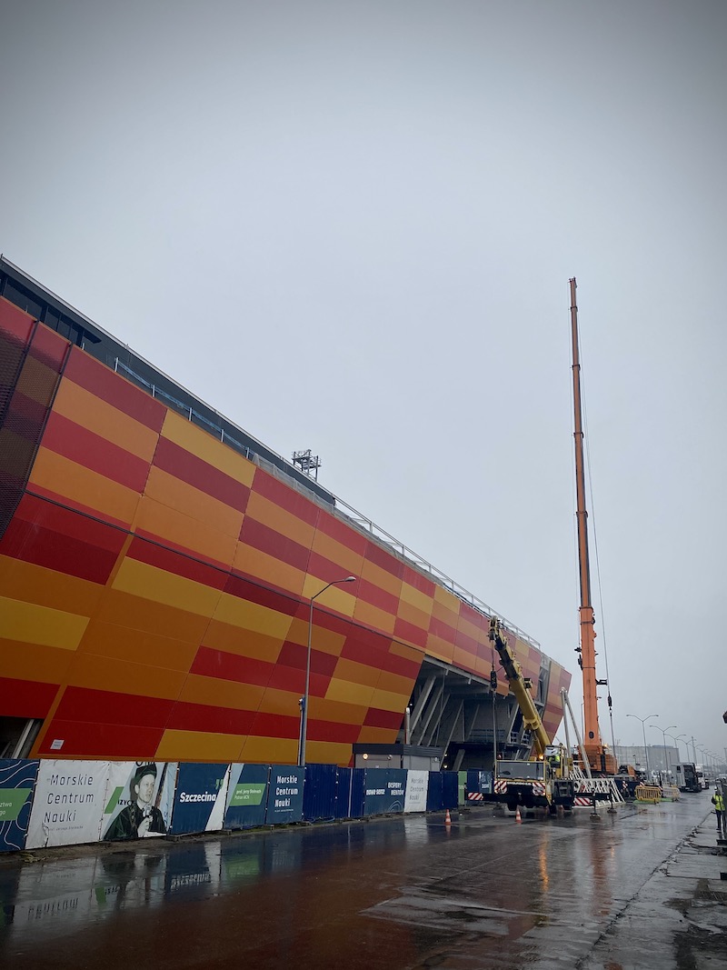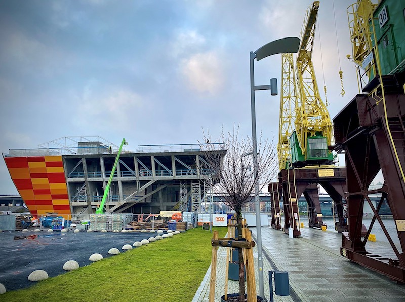 Zniknęły dźwigi z placu budowy Morskiego Centrum Nauki na szczecińskiej Łasztowni.