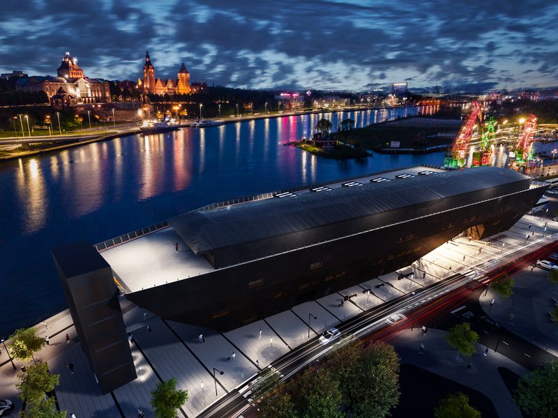 Powstający na Łasztowni budynek MCN ma być wyróżniającym się obiektem w mieście i regionie, przypominającym swym kształtem statek zacumowany przy nabrzeżu Odry. Zanim nastąpi otwarcie Morskiego Centrum Nauki, można zobaczyć jego nowe wizualizacje przygotowane przez pracownię Piotra Płaskowickiego – autora projektu.