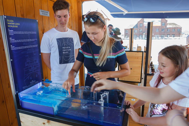 Do czasu zakończenia inwestycji możemy zajrzeć do kontenera z morską interaktywną ekspozycją. Dostępne są tam m.in. luneta, miniaturowa śluza czy łódź podwodna. W ten weekend kontener stoi na Łasztowni. Potem będzie prezentowany w innych miastach regionu.