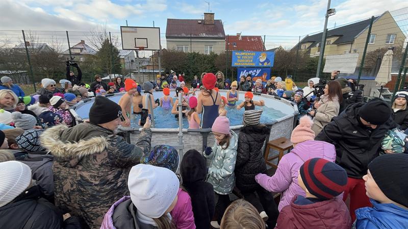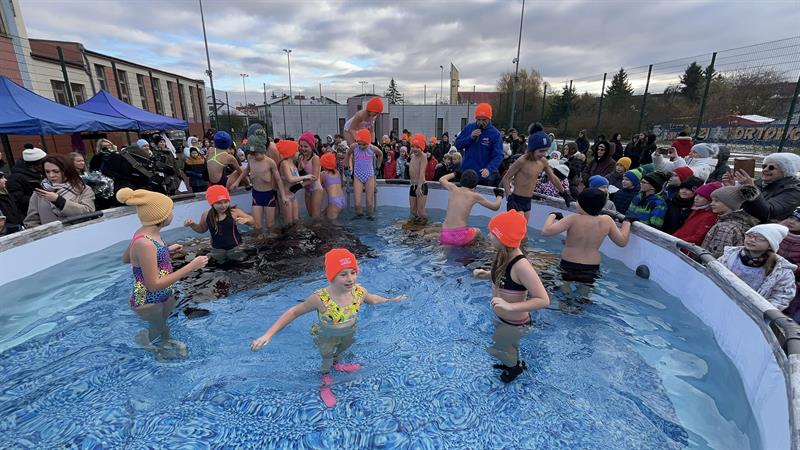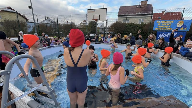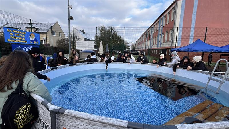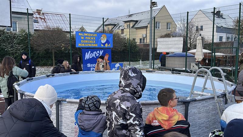 Ależ to była radość i świetna zabawa! Dwustu małych morsów ze szczecińskich szkół podstawowych w piątek, 22 listopada weszło do dużego ogrodowego basenu z zimną wodą, który stanął na boisku Szkoły Podstawowej nr 8 im. Młodych Europejczyków w Szczecinie. Pięciominutową kąpielą uczcili Światowy Dzień Morsa, który obchodzony jest 24 listopada. Wydarzenie na boisku przy ul. Brodnickiej 10 to największe dziecięce morsowanie w Polsce.
