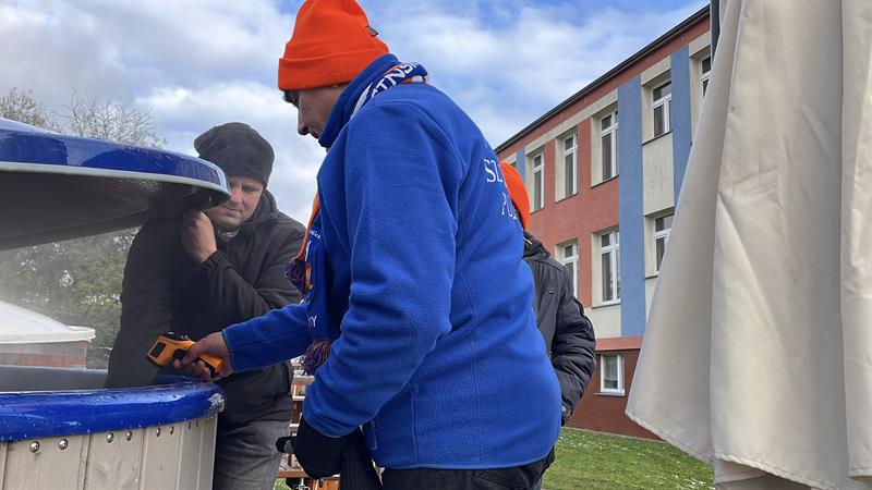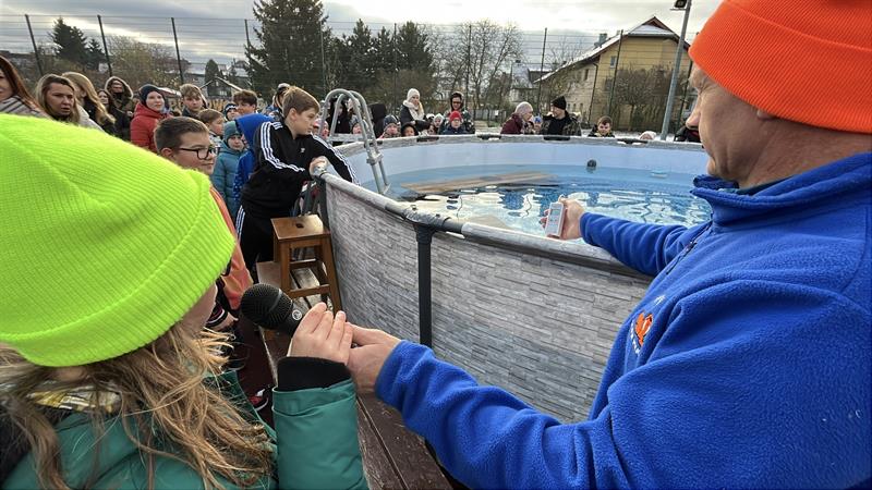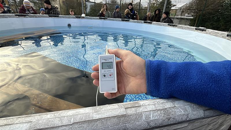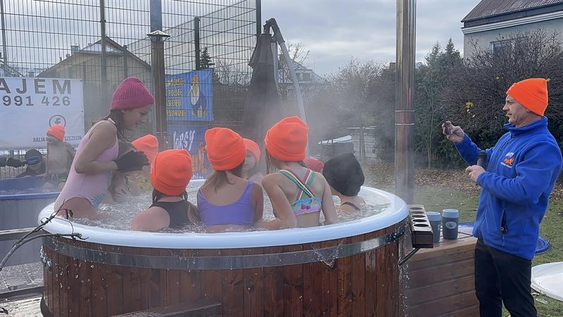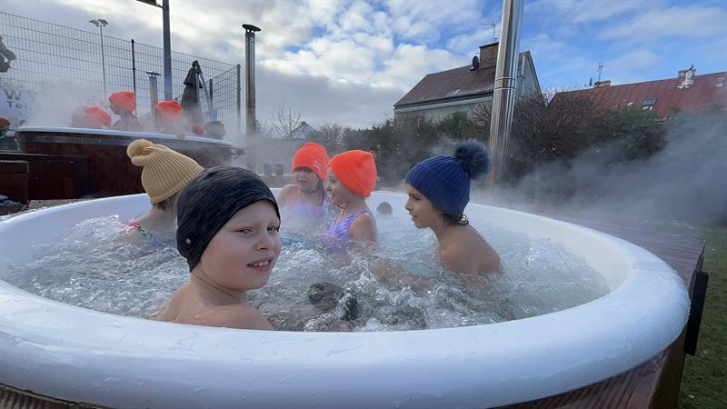 - Od czterech lat bawimy się zimnem i rozpowszechniamy zdrowy tryb życia - opowiadał dyrektor podstawówki. - Dziś uczniowie wchodzą na pięć minut do dużego basenu, który mieści 20-osobową grupę, potem mogą się ogrzać w trzech jacuzzi z gorącą wodą.