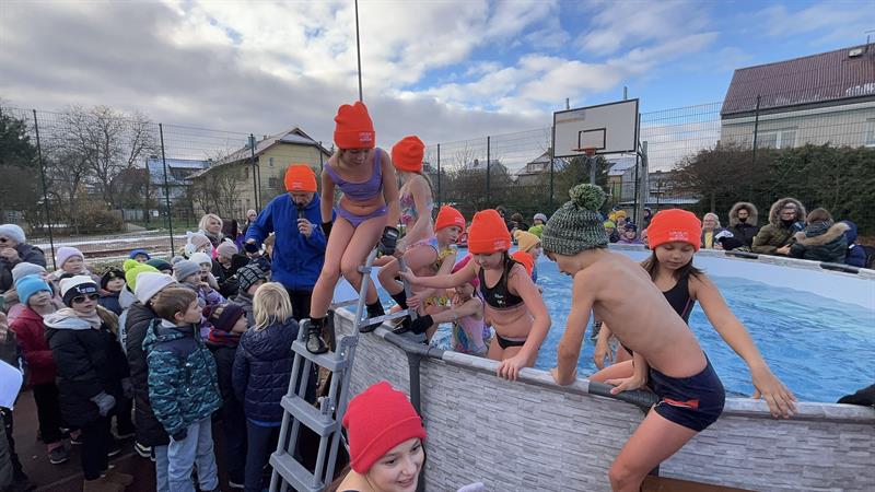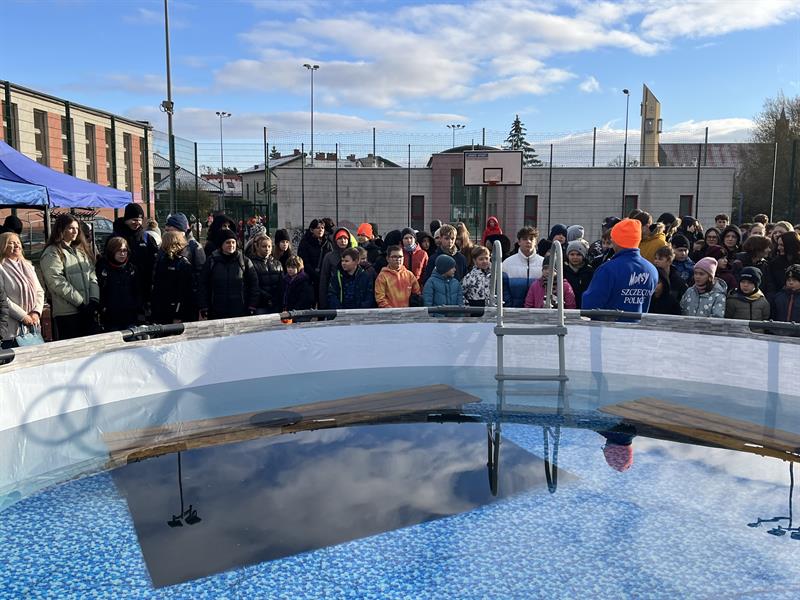 Zimowa kąpiel na szkolnym boisku odbyła się nie tylko pod czujnym okiem dyrektora placówki, ale także nauczycieli i rodziców oraz członków Szczecińsko-Polickiego Klubu Morsy im. Zbyszka Ulatowskiego. Imprezę, która ma na celu promocję zdrowia wśród dzieci i młodzieży, współfinansowało Miasto Szczecin. ©℗