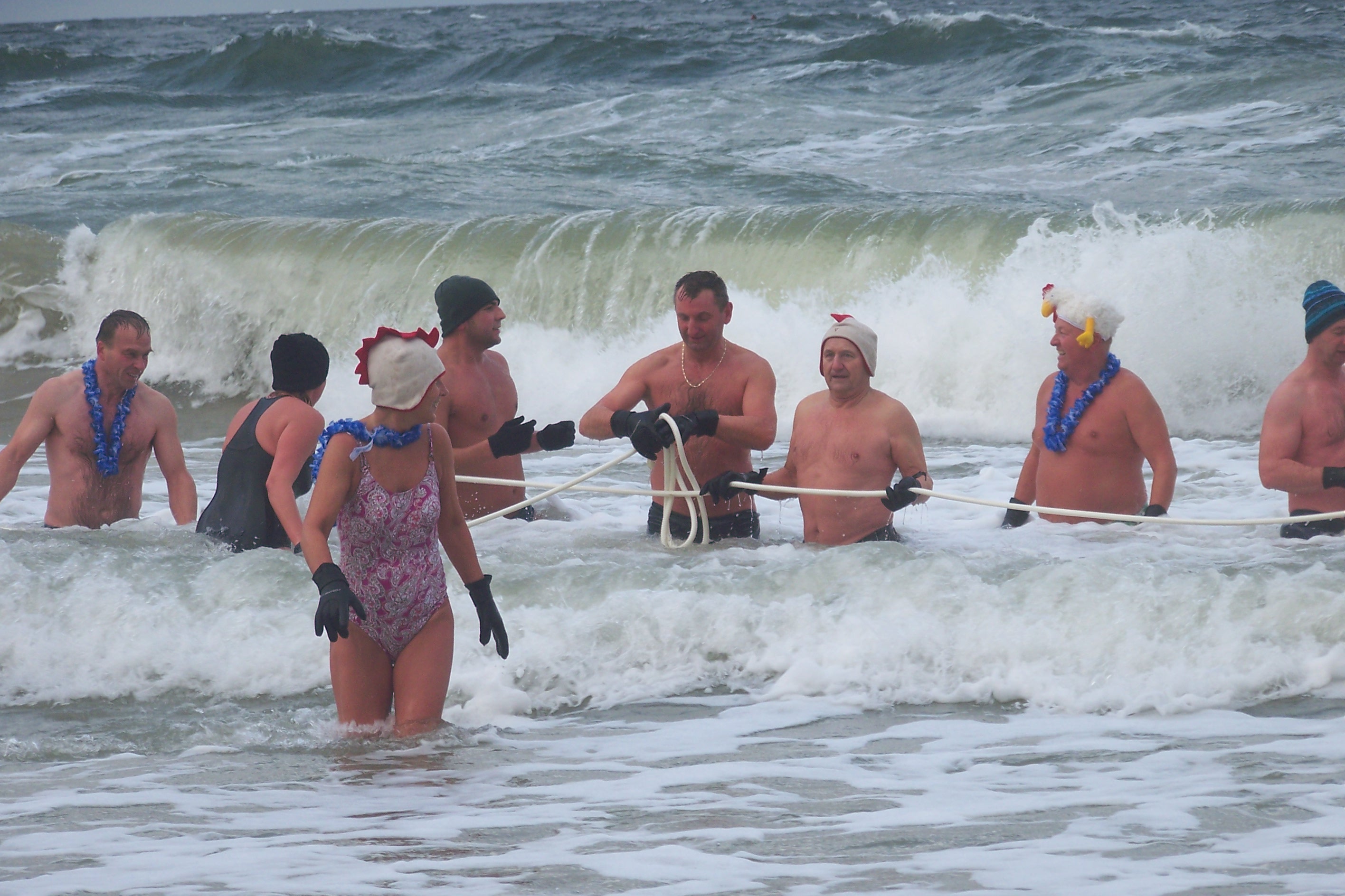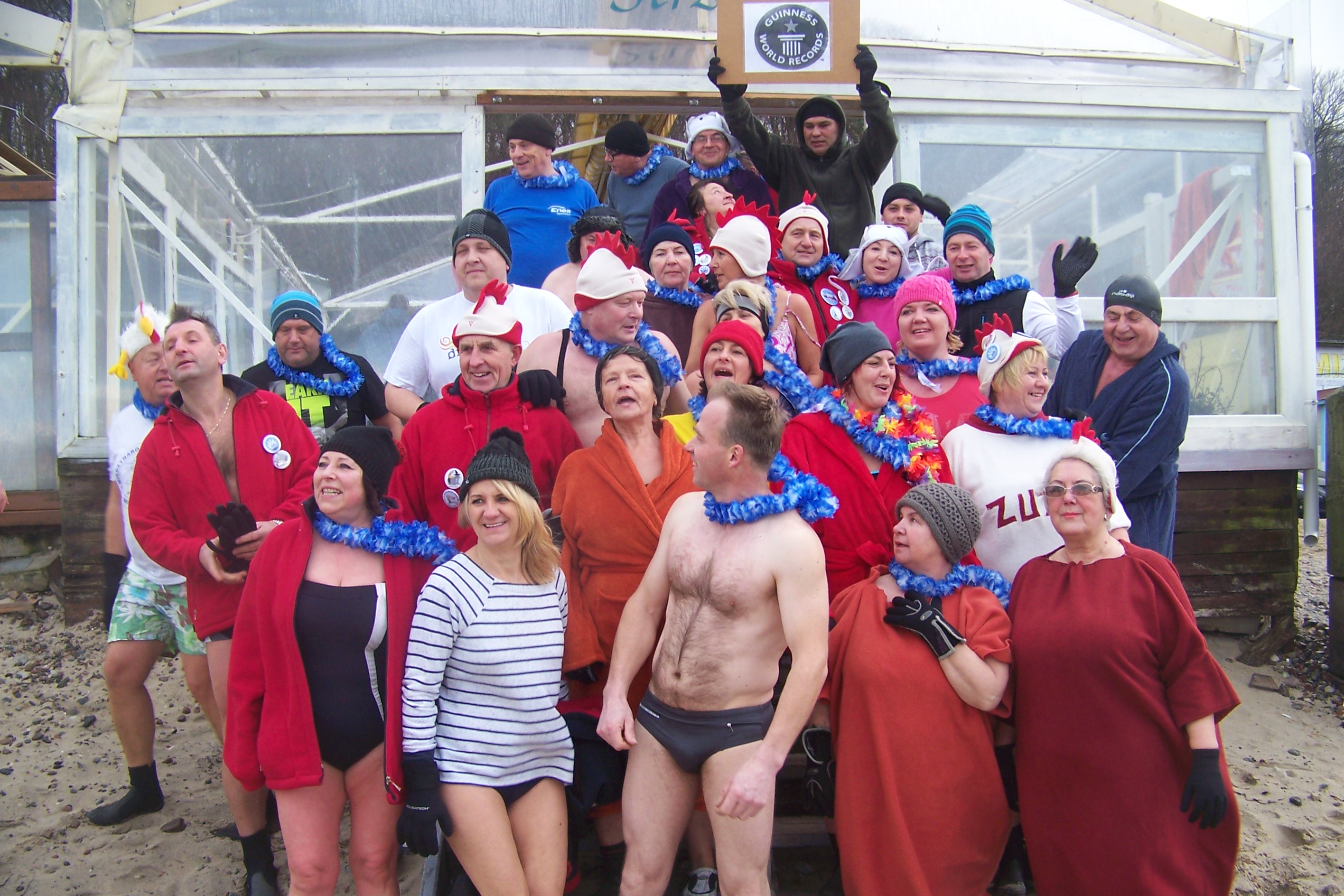 - Aby rekord był uznany grupa co najmniej 25 osób musi przebywać w wodzie przez ponad trzy minuty, a woda musi mieć mniej niż 10 stopni Celsjusza. Dziś w Międzyzdrojach do morskiej kąpieli przystąpiły 32 osoby (od osiemnastego roku życia do 74 lat), a woda ma temperaturę około 5 stopni – mówi Marek Jarczyński z Wisełki, członek międzyzdrojskiego klubu Kurki Wodne.
