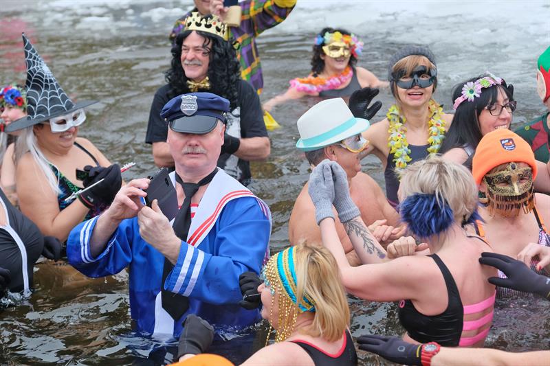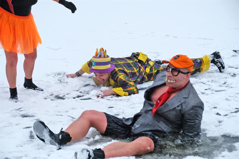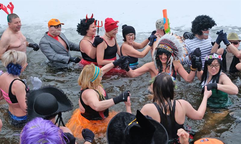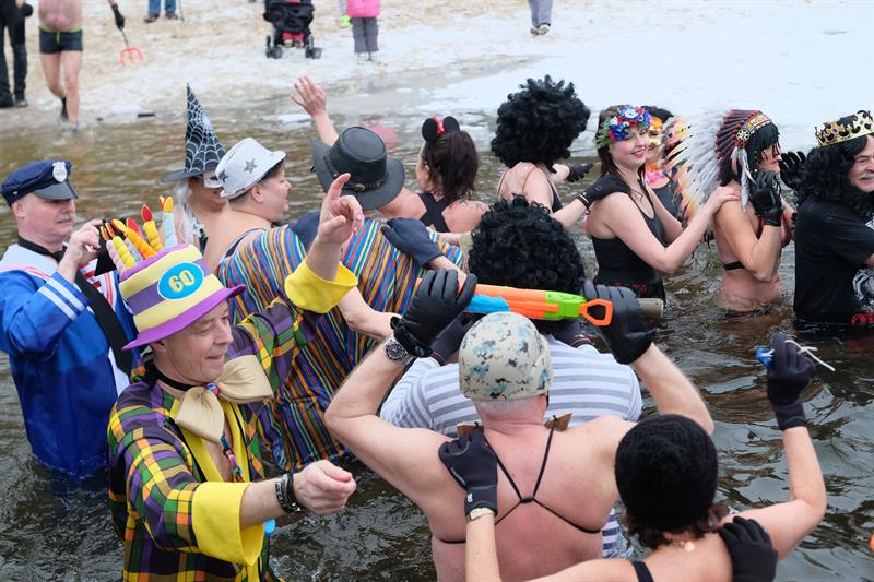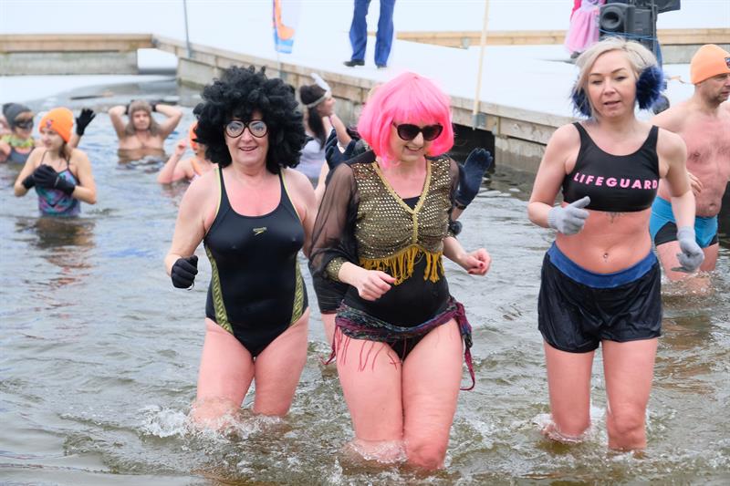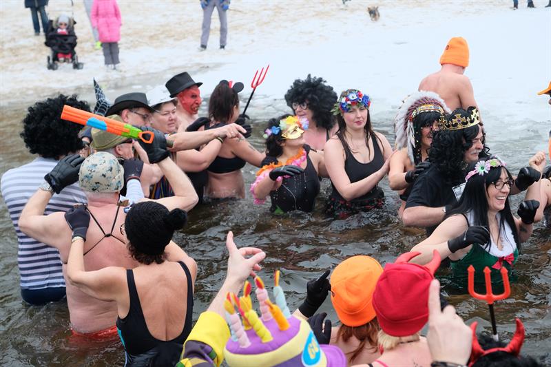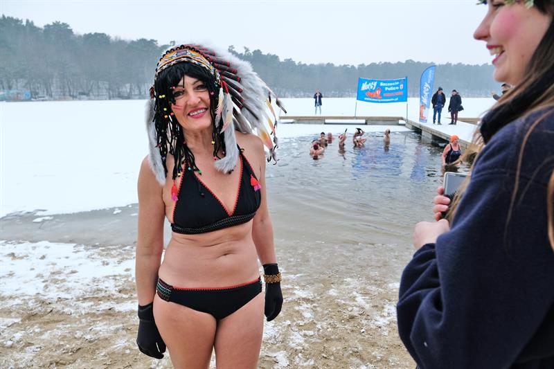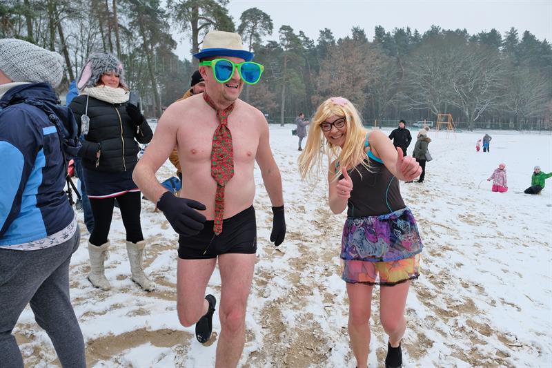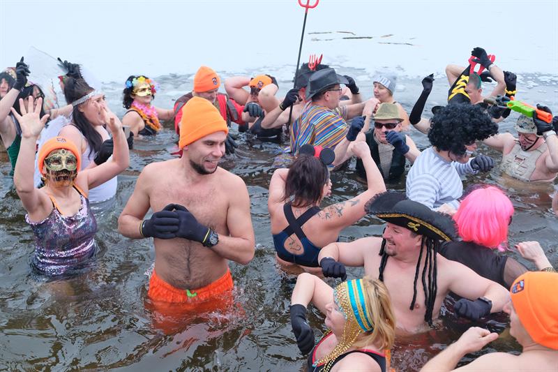 Tym razem na Głębokiem lodu i śniegu nie brakowało. Członkowie klubu przebrani w karnawałowe stroje paradnie weszli w rytm muzyki do jeziora. Filmowali i fotografowali ich licznie przybyli przedstawiciele mediów.