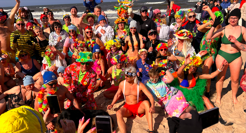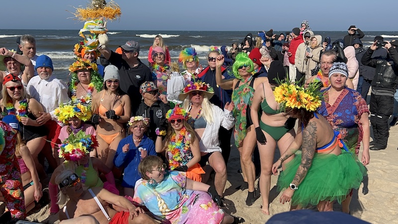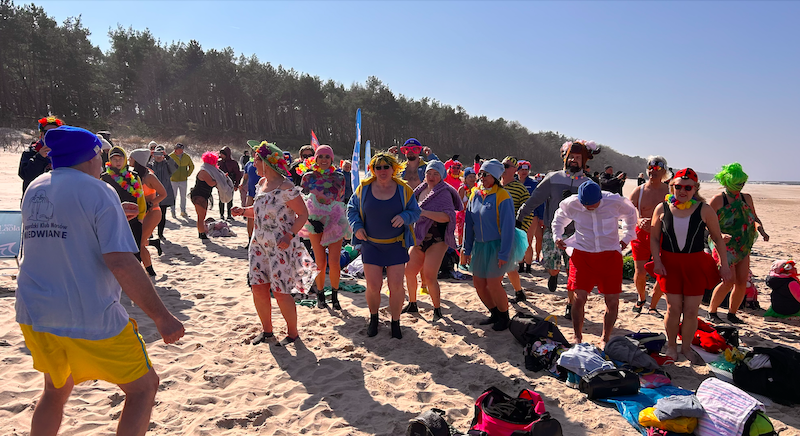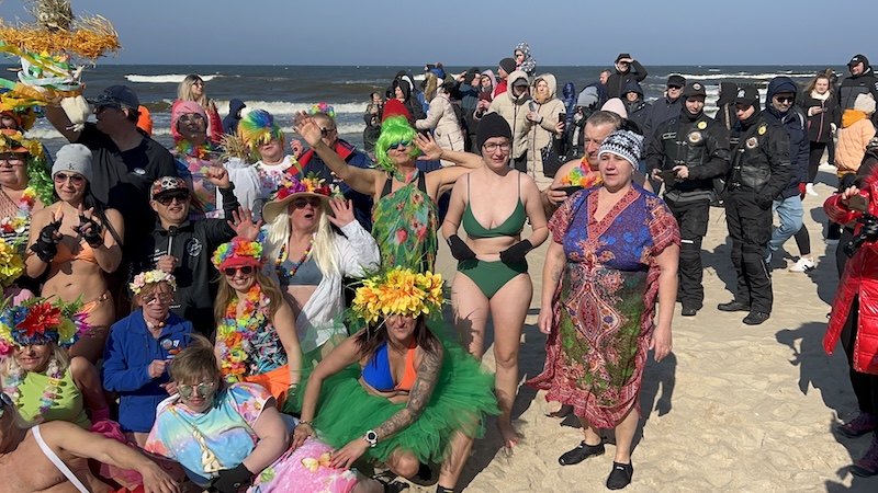 Słoneczna pogoda nad Bałtykiem sprzyjała w tym roku morsom z naszego województwa witającym w sobotę wiosenny sezon w Pobierowie (były też dwa morsy z Hanoweru). Chłodny wiatr przeganiał co prawda szybko z plaży niektórych turystów, ale dla morsów oczywiście nie mógł być żadną przeszkodą.