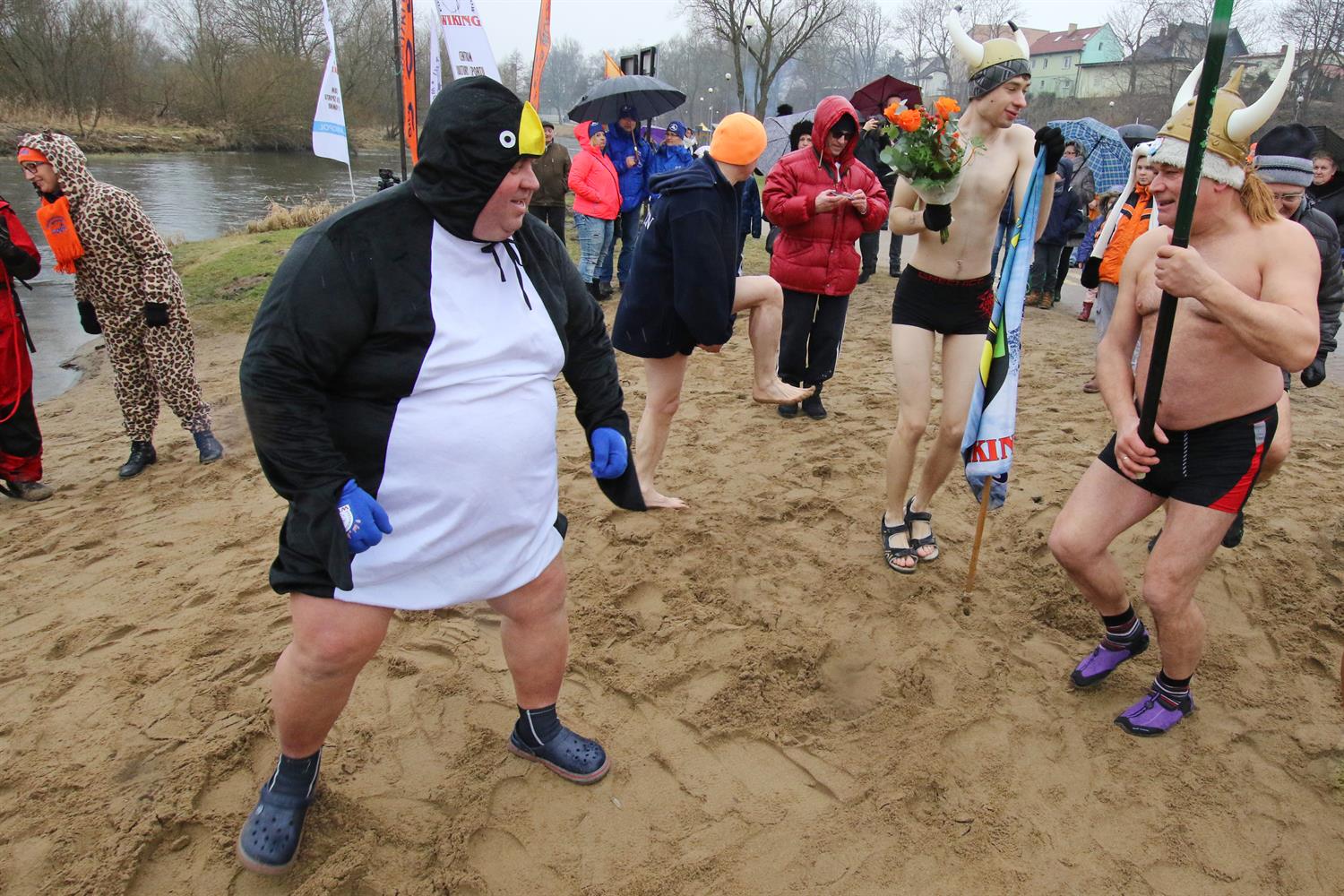 Pod kostiumami kryły się bowiem prawdziwe… morsy. Zimową kąpiel jak co roku w tym miejscu zorganizował białogardzki klub „Sopel”. Po krótkiej rozgrzewce jego członkowie oraz przybyli na imprezę sympatycy ochoczo pobiegli do lodowatej Radwi. Niektórzy tylko narzekali na jej temperaturę, twierdząc, że jak na tę porę roku była za wysoka. ©℗
