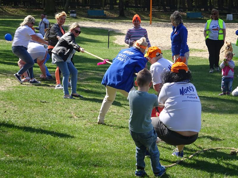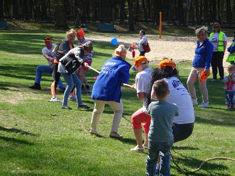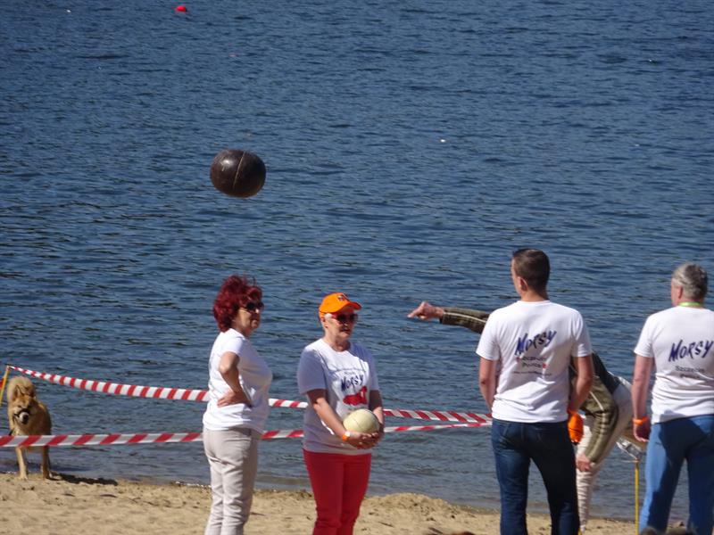 Potem plaża stała się areną gier i zabaw. Między innym ścigano się w workach, rzucano piłką lekarską, przeciągano linę. Nie zabrakło rytmicznej muzyki.