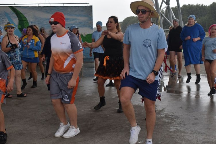 Miedwianie gościli dziś zaprzyjaźnione morsy ze Szczecińsko - Polickiego Klubu Morsów im. Zbyszka Ulatowskiego oraz dzieci z Młodzieżowego Ośrodka Socjoterapii w Stargardzie. Nim wszyscy weszli do wody, uczestniczyli w rozgrzewce, którą poprowadziła Monika Wiśniewska z OSiR. Pogoda była dziś iście sztormowa; mocno wiało i padał deszcz, co jednak nie przeszkodziło morsom w szaleństwach w wodzie.