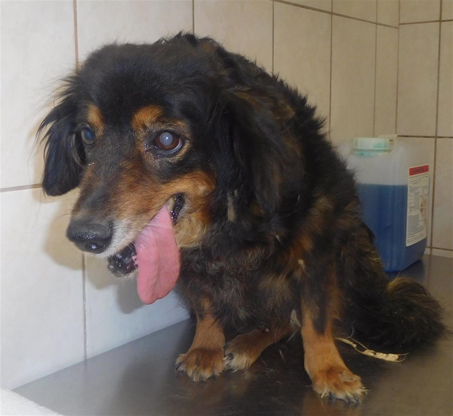 Na zdjęciu: Miała liczne stare krwiaki podbrzusza, złamaną miednicę, niedowład kończyn tylnych. To ona - Mika - której podróż za „tęczowy mostek" okazała się jedynym wybawieniem od niewyobrażalnego bólu, jakiego doświadczała od lat...