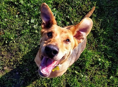 Jest niczym brat łata: towarzyski, serdeczny, łatwo nawiązujący kontakt z innymi i o łagodnym usposobieniu. Tyle że pies. O pięknej sierści w kolorze słodkiego karmelu. Z pyskiem w uśmiechu i zabawnie klapniętymi uszami.
