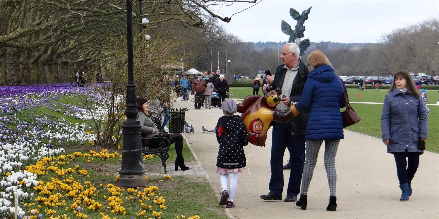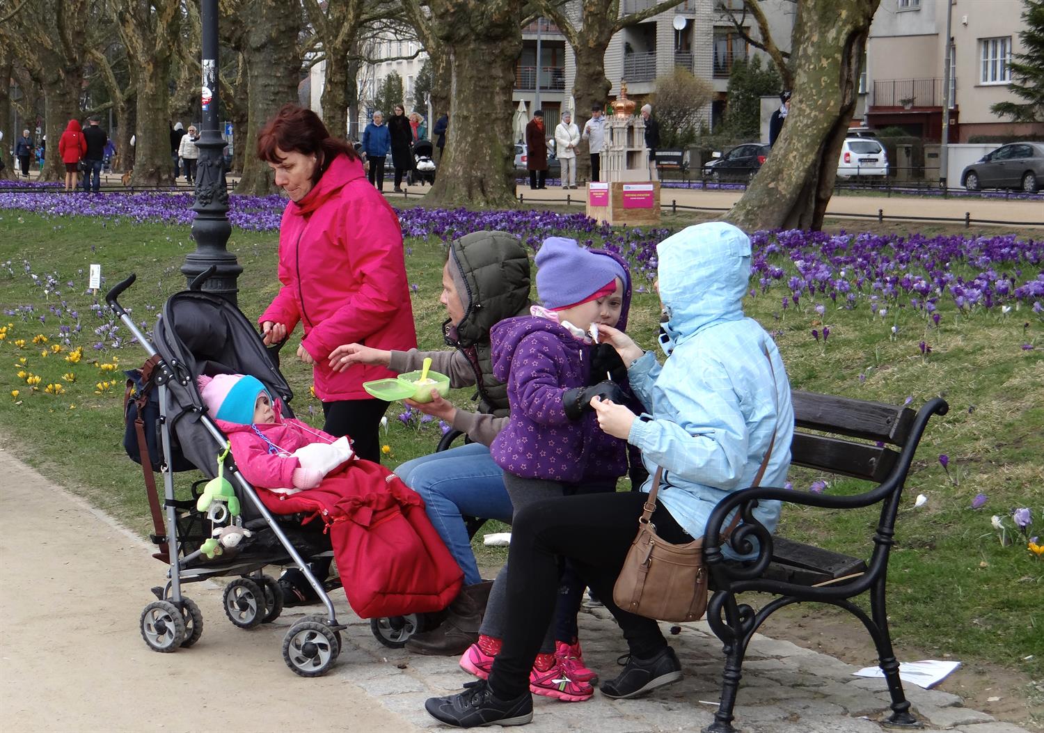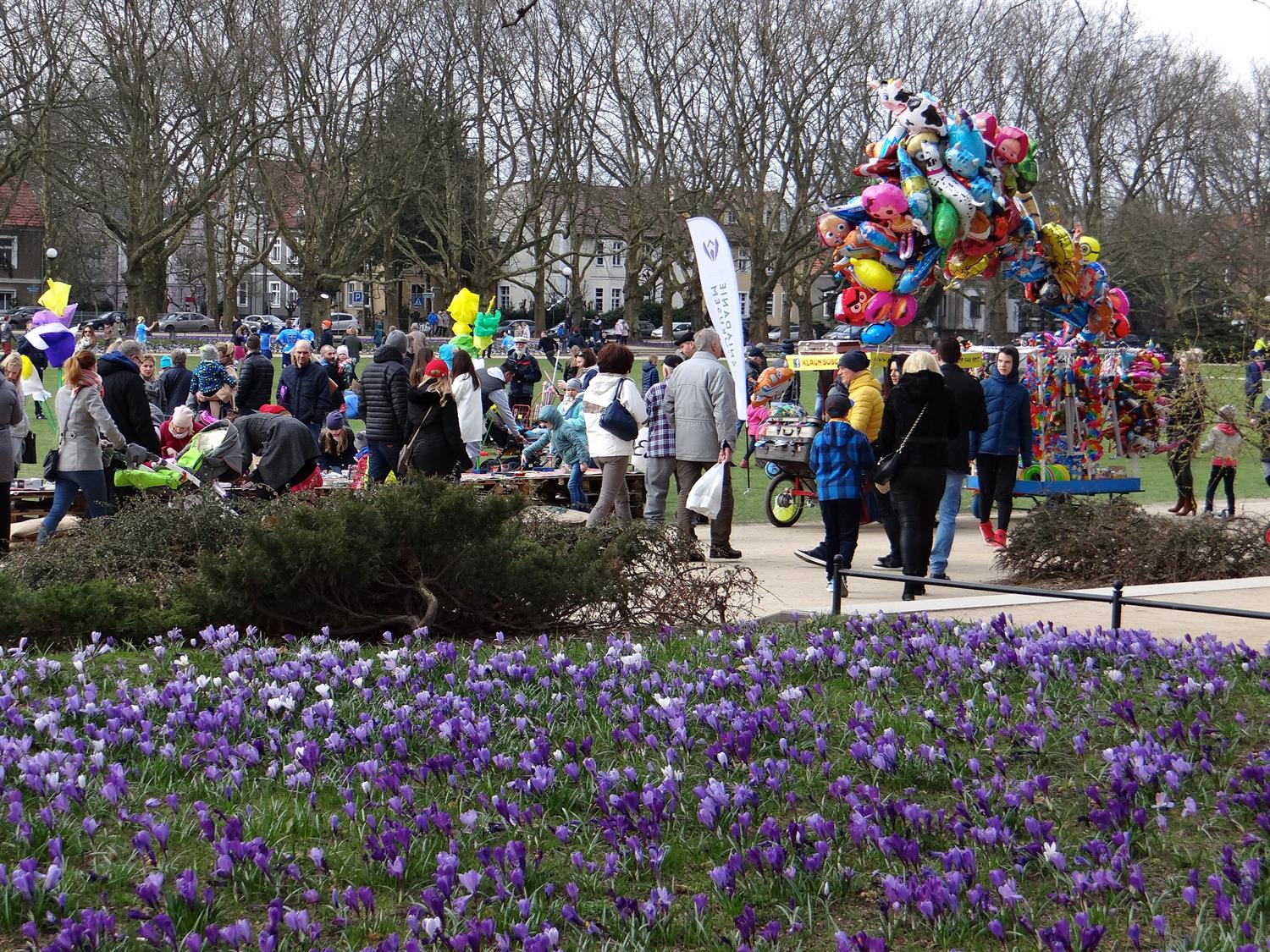 Wokół Jasnych Błoni pędziła kolorowa ciuchcia. Mijała stoiska z regionalnymi pysznościami, ciastami i miodami. Na trawiastej płycie fruwały dyski, dzieciaki goniły porywane przez wiatr bańki mydlane, łapały kolorowe balony albo malowały kwiatowe obrazy na tle efektownych krokusowych dywanów. To ledwie ułamek morza atrakcji jednego z najbardziej znanych i lubianych wiosennych wydarzeń Szczecina - „Śniadania z krokusem".