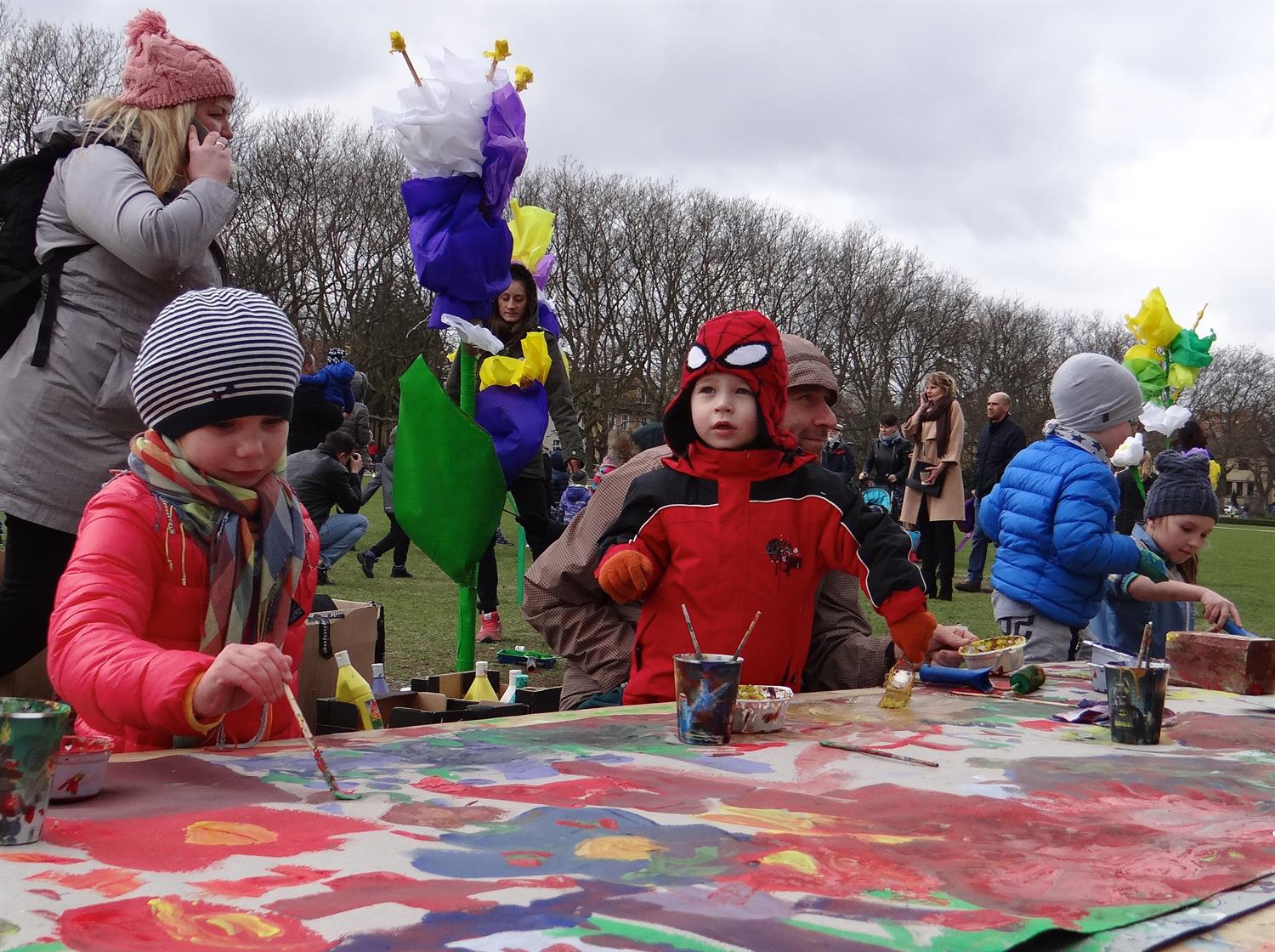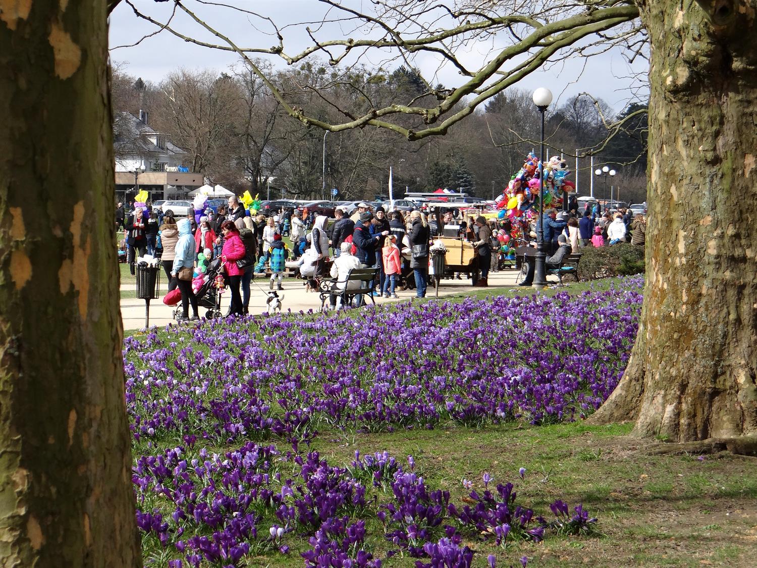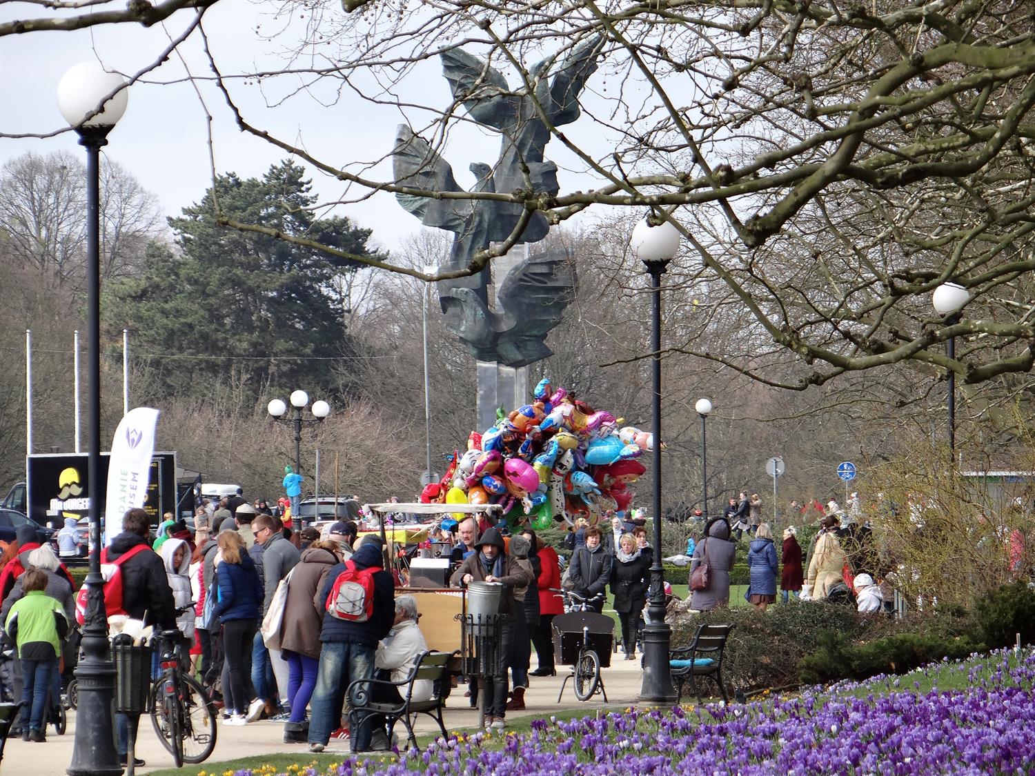 Wokół Jasnych Błoni pędziła kolorowa ciuchcia. Mijała stoiska z regionalnymi pysznościami, ciastami i miodami. Na trawiastej płycie fruwały dyski, dzieciaki goniły porywane przez wiatr bańki mydlane, łapały kolorowe balony albo malowały kwiatowe obrazy na tle efektownych krokusowych dywanów. To ledwie ułamek morza atrakcji jednego z najbardziej znanych i lubianych wiosennych wydarzeń Szczecina - „Śniadania z krokusem".