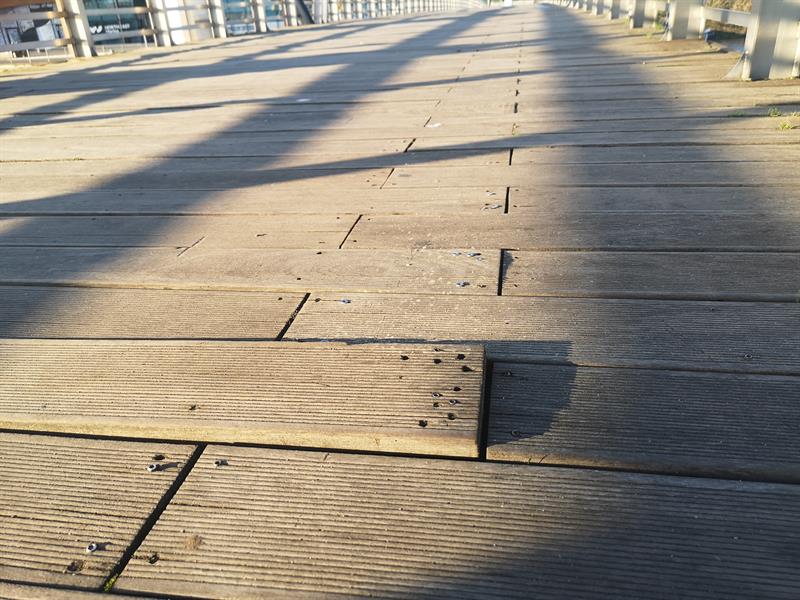 Spacerując pomostem, można dostrzec, że wiele wkrętów wystaje, co w najlepszym wypadku grozi zniszczeniem buta. Latem, jak ktoś będzie szedł na bosaka, może być znacznie gorzej.